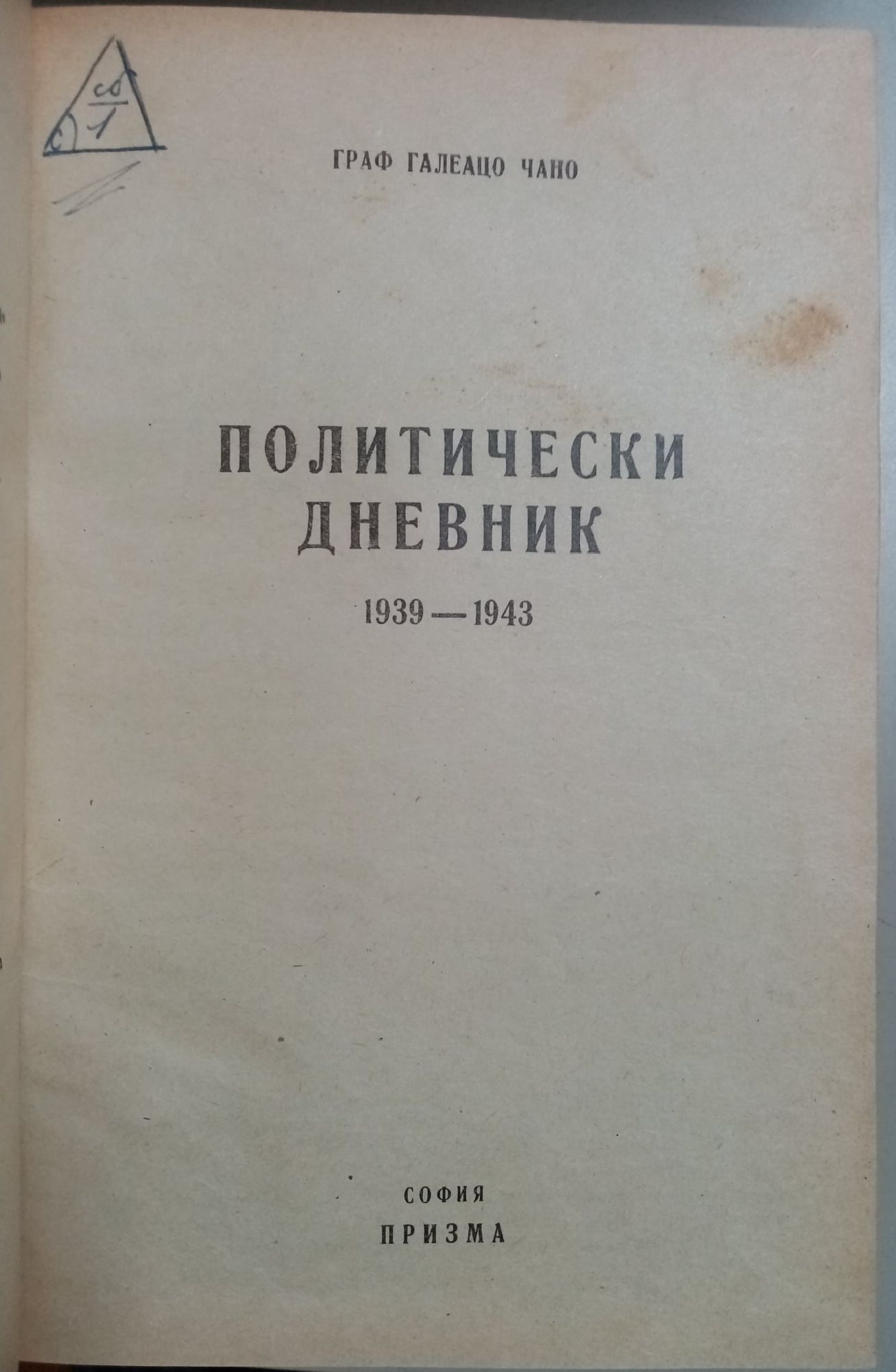 Българските читатели имат в ръцете си може би най-интересната книга, написана по време на войната. Тя осветлява събитията, що покриха близки и далечни страни кръв и разрушения. Никоя друга книга за и около току-що свършената война няма и не може да има достойнствата на "Дневника на граф Чано". В своя дневник външният министър на фашистка Италия е записвал ден по ден всички събития - така, както ги вижда, всички политически промени - така, както ги чувства.