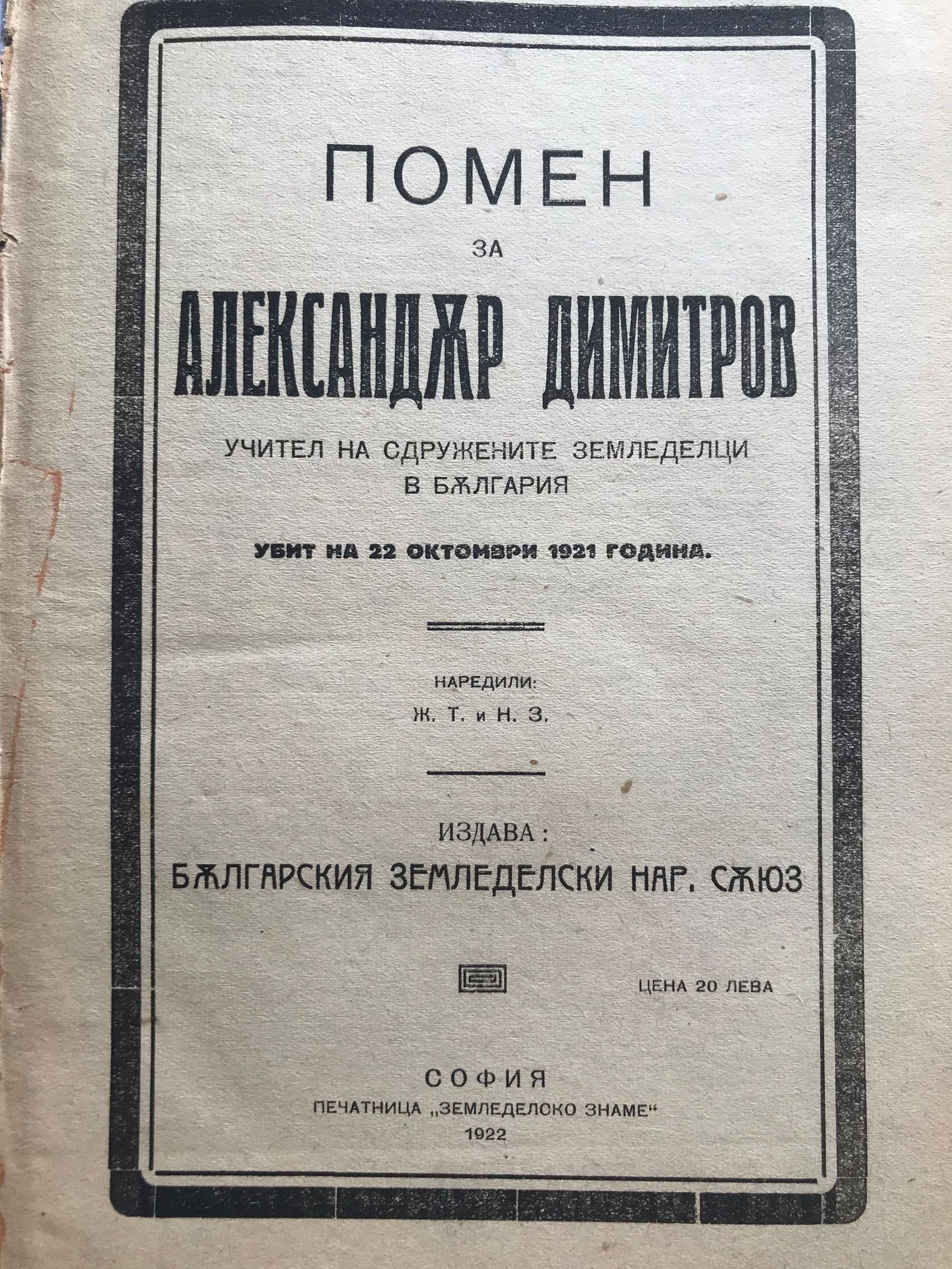 Учител на сдружените земеделци в България. Уби на 22 октомври 1921 година. Разни, №13 (1914). Факти и документи. Сборникъ отъ статии