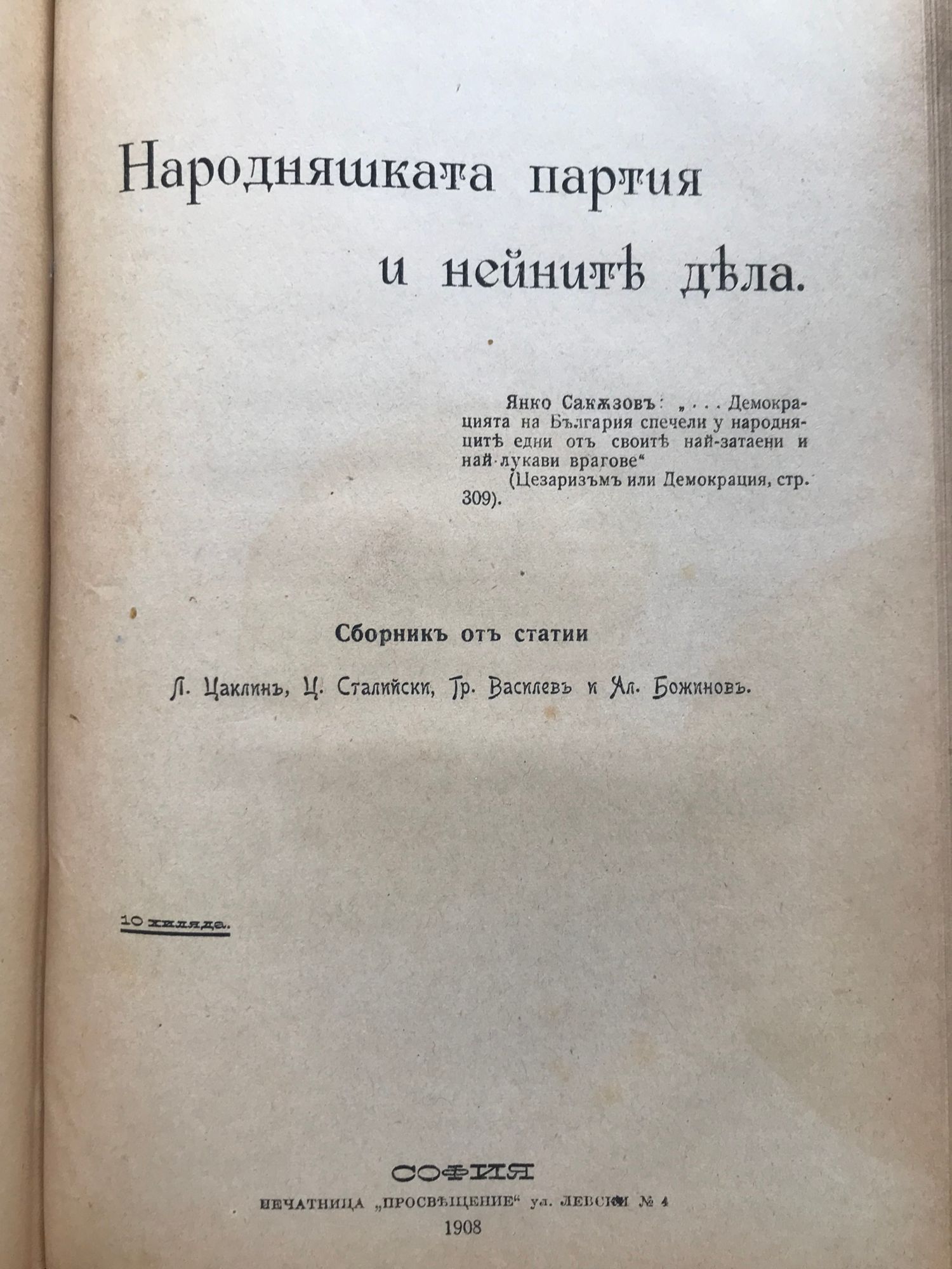 Помен за Александър Димитров. Земеделския съюзъ и училището. Преписка върху събитията, които доведоха до скъсяване на сношенията съ Турция. Първиятъ църковно-народенъ съборъ въ свободна България. Българските управници презъ Световната война. Народняшката партия и нейните дела / Помен за Александър Димитров. Земеделския съюз и училището. Преписка върху събитията, които доведоха до скъсяване на сношенията с Турция. Първият църковно-народен събор в свободна България. Българските управници през Световната война. Народняшката партия и нейните дела