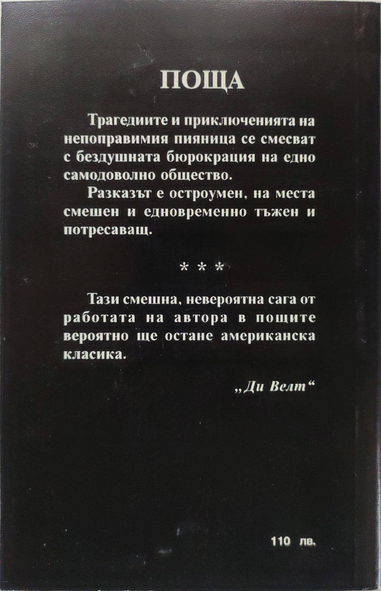 14,00 лв. / 7,16 €Отлично състояние на книжното тяло. Като нова, само лека следа от навлажняване в горния ъгъл на първите листове.