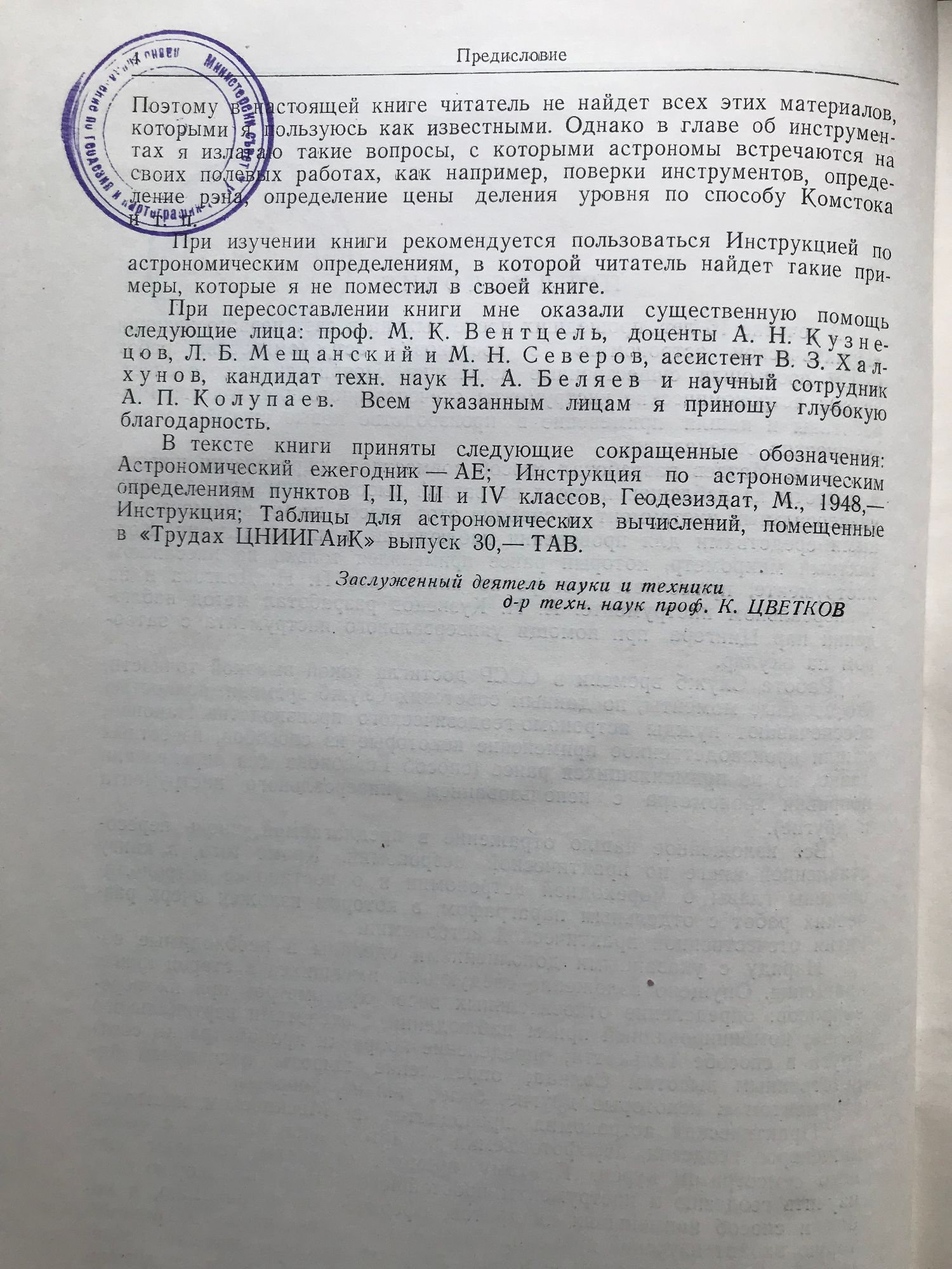 от проф. К. А. Цветков