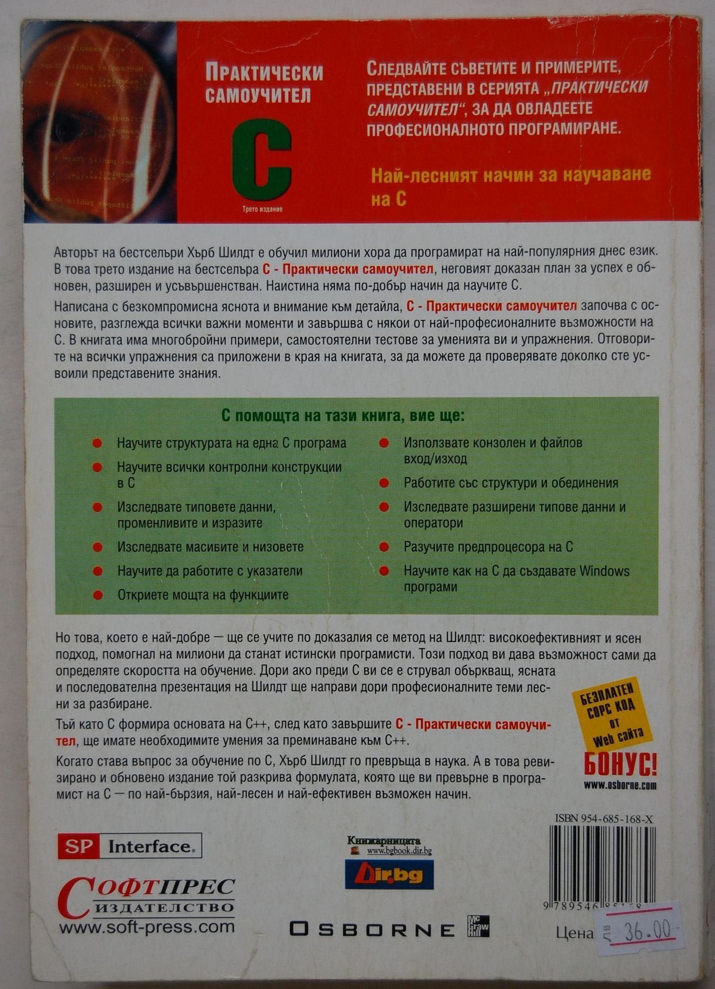 Книгата започва с основите, разглежда всички важни моменти и завършва с някои от най-професионалните възможности на С. В книгата има многобройни примери, самостоятелни тестове за уменията ви и упражнения.