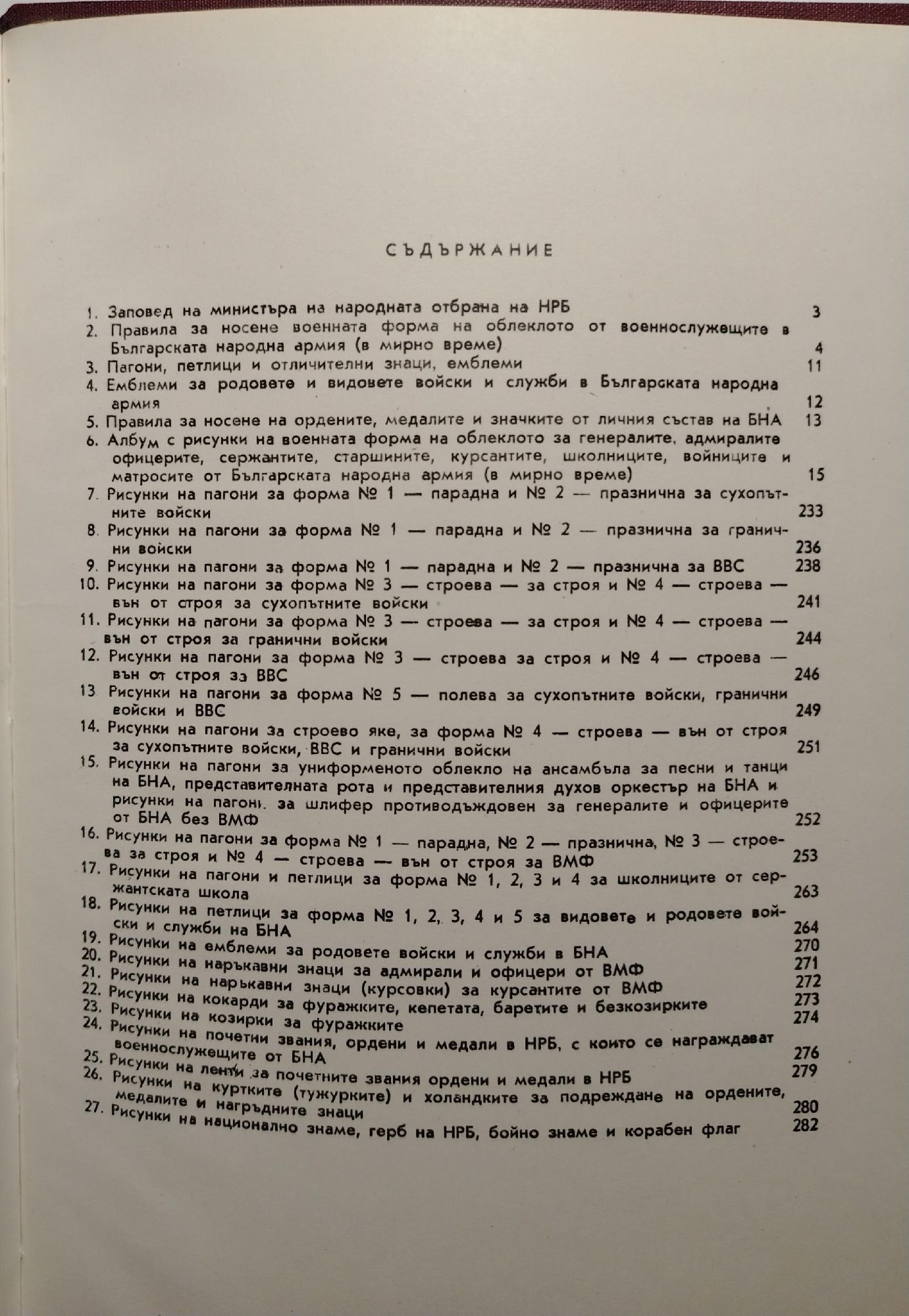 Правила за носене военната униформа на облеклото, ордените, медалите и отличителните знаци от генералите, адмиралите, офицерите, сержантите, старшините, курсантите, школниците, войниците и матросите от Българската народна армия (в мирно време)