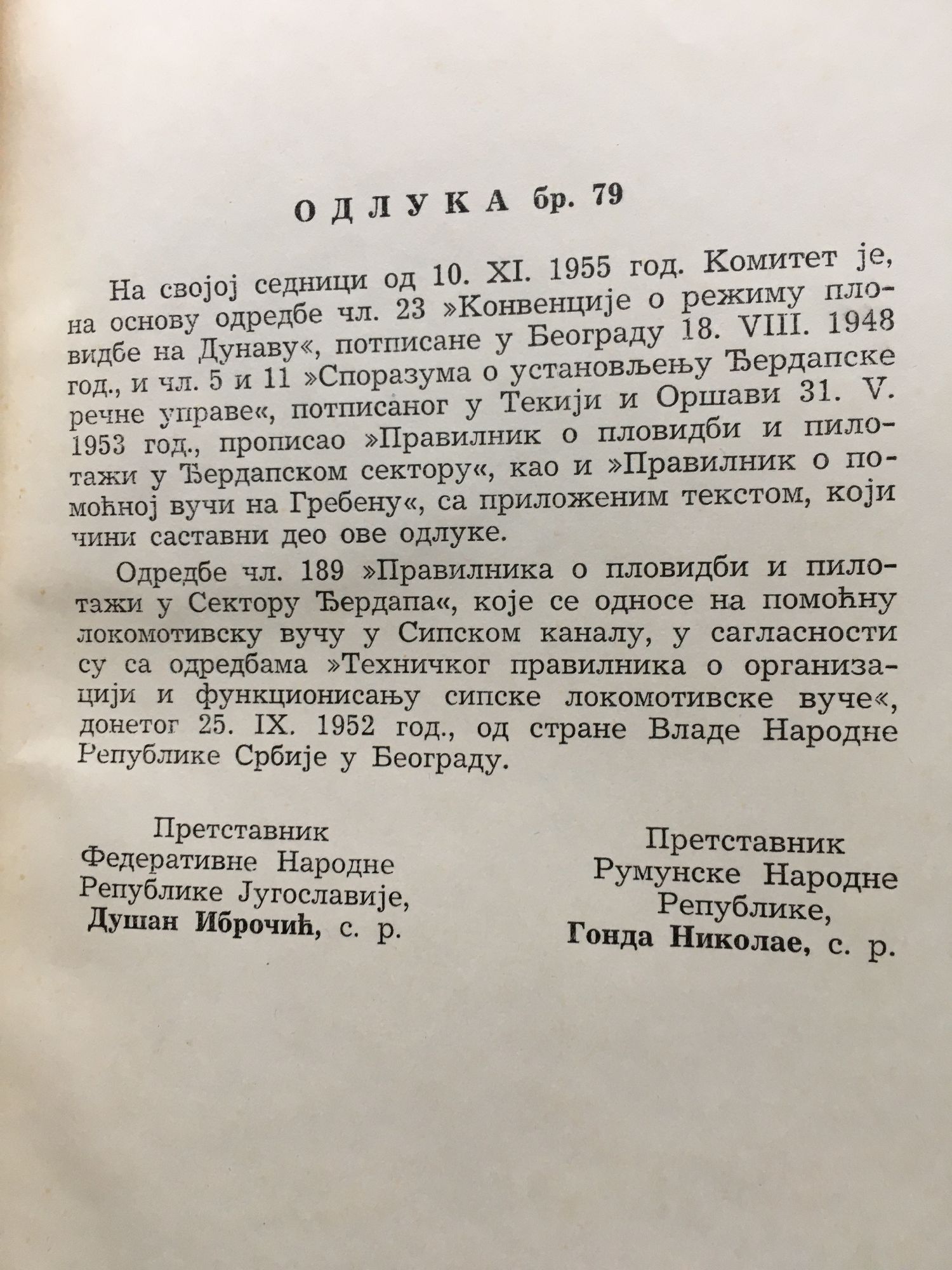 Правилник о пловидби и пилотажи у бердапском сектуру и правилник о помочноj вучи на гребену