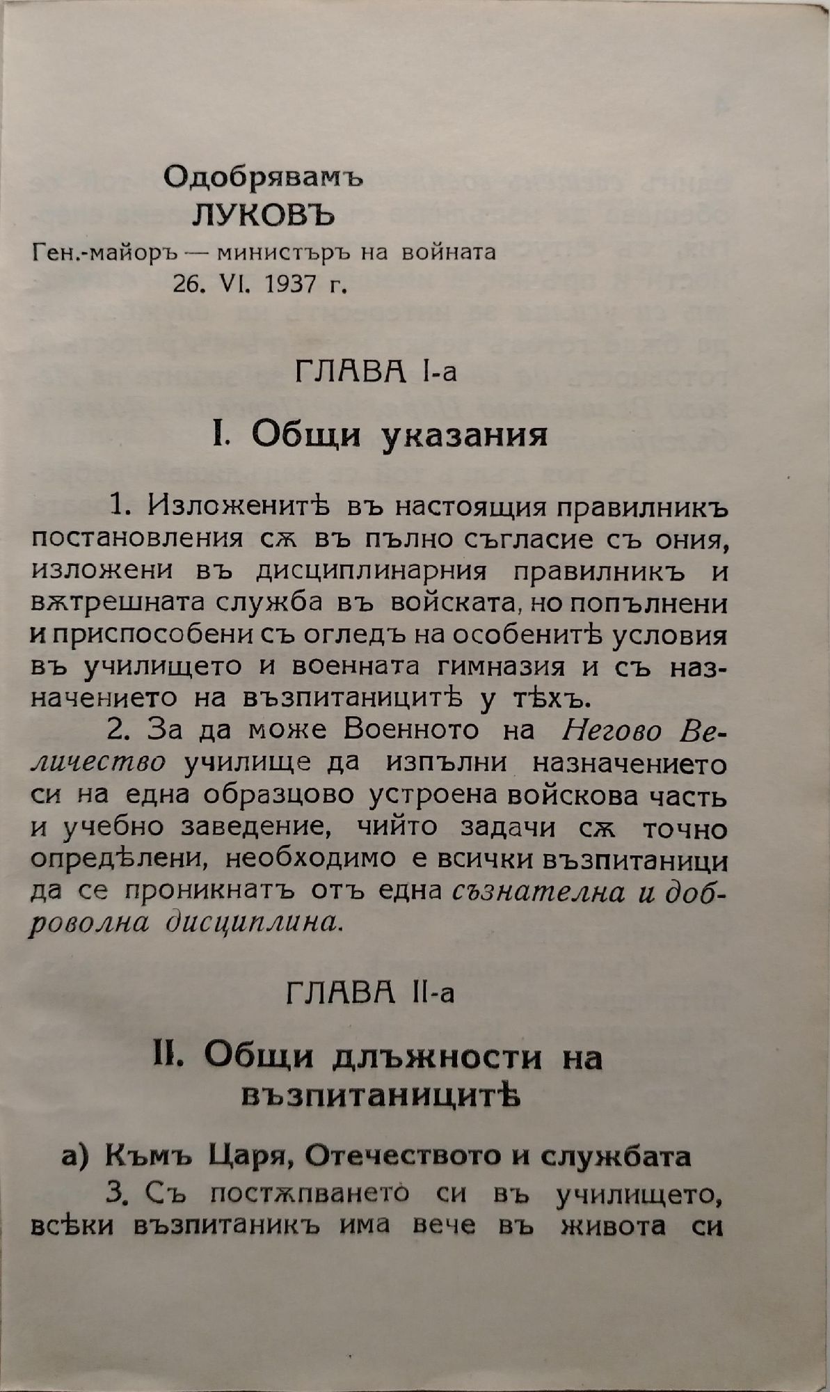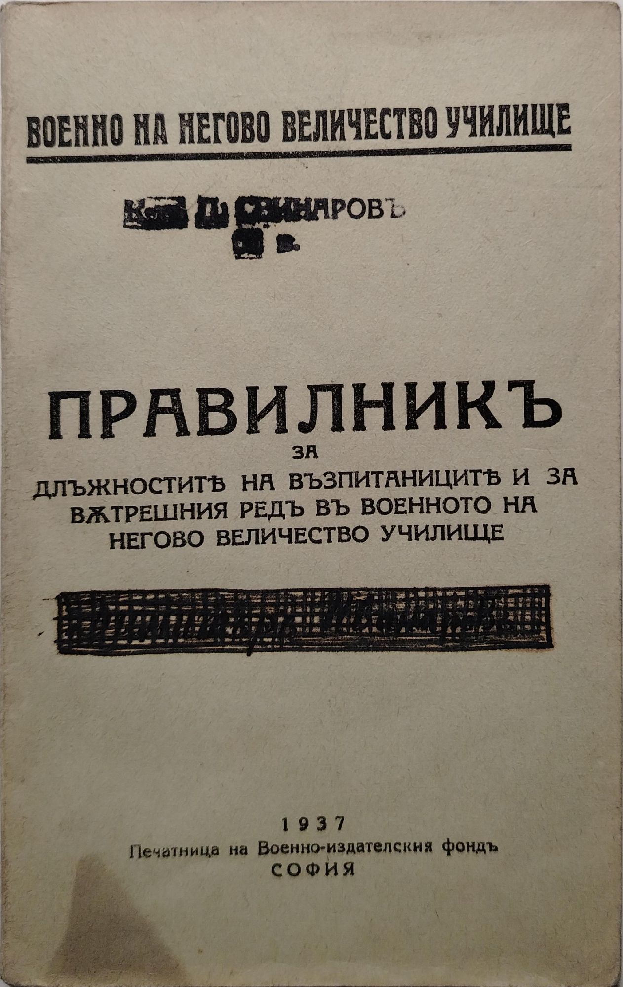 Правилник за длъжностите на възпитаниците и за вътрешния ред във военното на негово величество училище