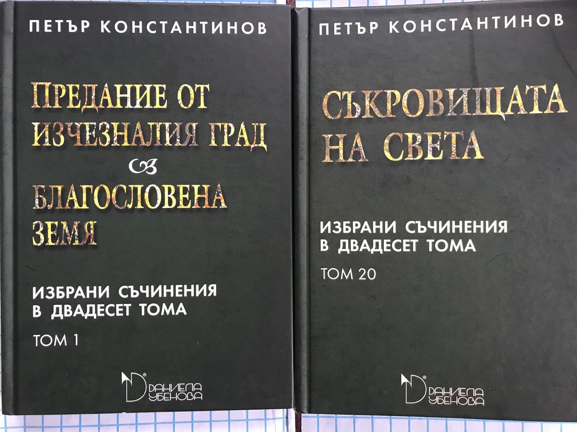 том 1 - Предание от изчезналия град. Благословена земя. том 2 - Ирмена. Черкезките хълмове. том 3 - Хаджи Адем. Семената на слънцето. том 4 - Последната изповед. том 5 - Авеню фош. том 6 - Заливът на сънищата . том 7 - Изгревът - том първи от тетралогията Синият аметист. том 8 - Прощаване с пролетта - том втори от тетралогията Синият аметист. том 9 - Разпятието - том трети от тетралогията Синият аметист. том 10 - Булевардът на спомените - том четвърти от тетралогията Синият аметист. том 11 - Вдъхновението на едно столетие. том 12 - От душа и от сърце. Времето на майсторите. том 13 - Светилници в утрото. том 14 - Пътища на надеждата. том 15 - Вечният бог. том 16 - Сказание за долината на розите. том 17 - Публицистика. том 18 - Съкровищата на България. том 19 - Съкровищата на Европа. том 20 - Съкровищата на свта.