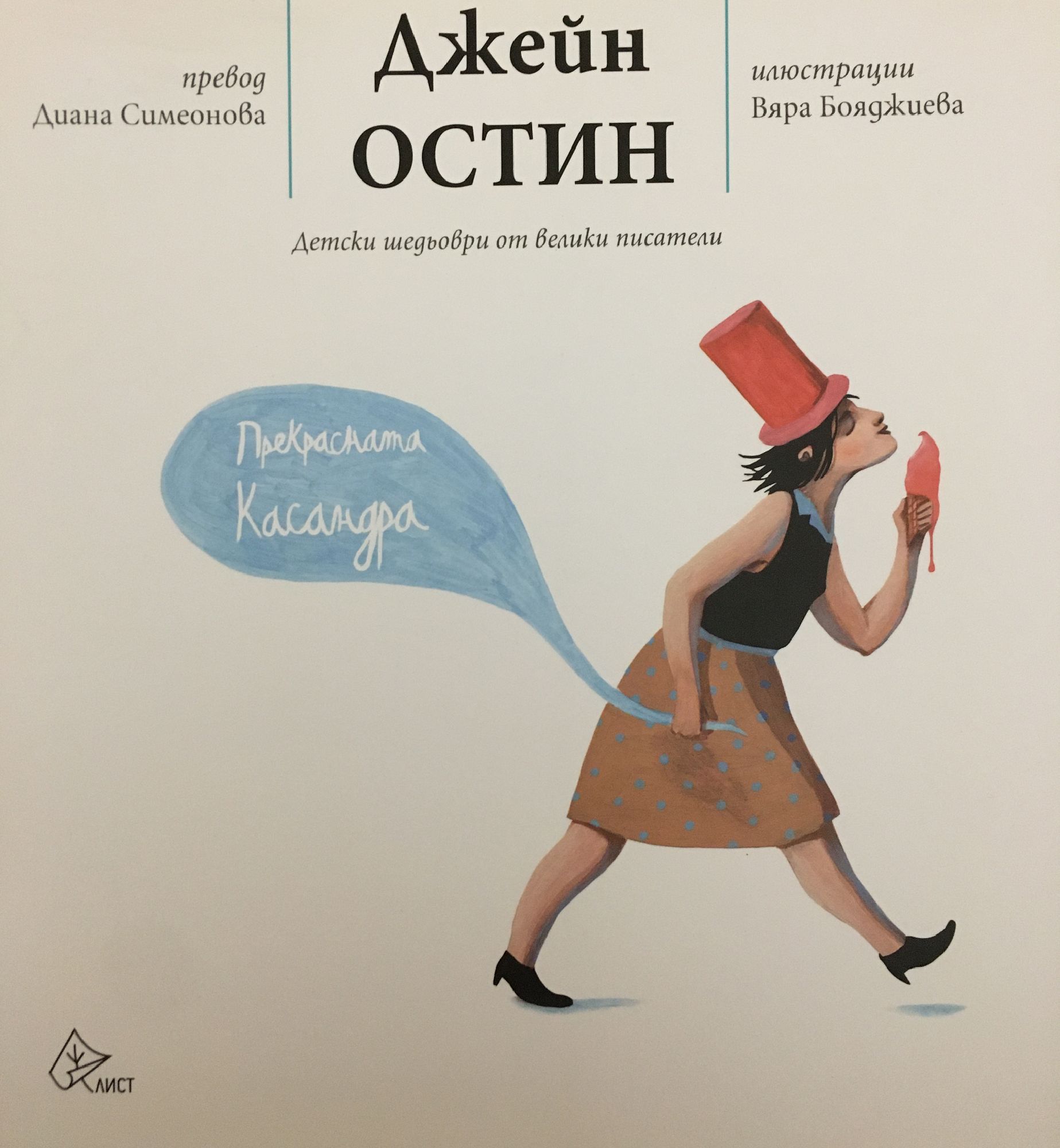 Тя обърнала няколко пъти джобовете си, но ровенето било напразно. Никакви пари не открила. Мъжът станал настоятелен. Тогава тя сложила шапчицата си на главата му и избягала. За авторката: Джейн Остин (1775 – 1817) е прочута британска писателка, творила във времена, когато не е било прието жените да се занимават с това. Най-известните ? романи са „Гордост и предразсъдъци”, „Разум и чувства” и „Ема”. На 12 години пише „Прекрасната Касандра” – кратка пародия на популярните по онова време сантиментални и мелодраматични романи. Съставена е от дванайсет части