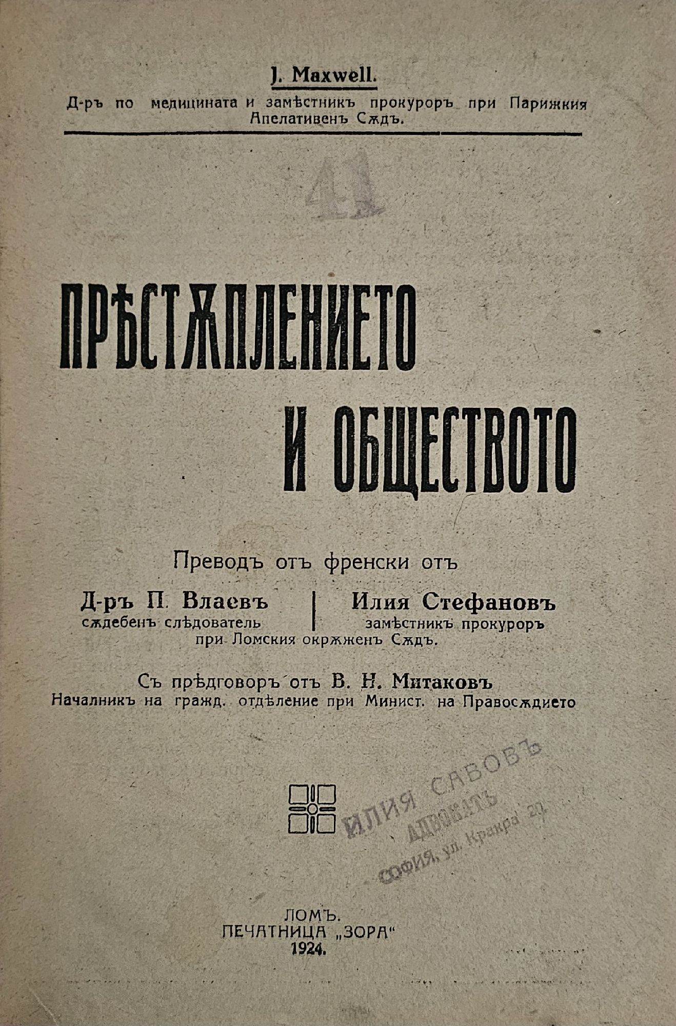 - преводач: д-р П. Влаев и Илия Стефанов