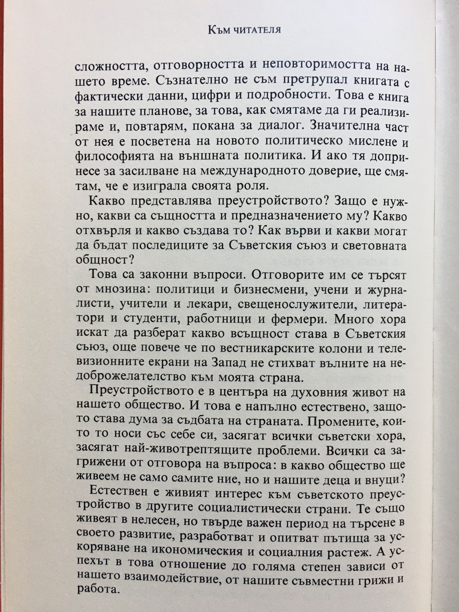 Преустройството и новото мислене за нашата страна и целия свят