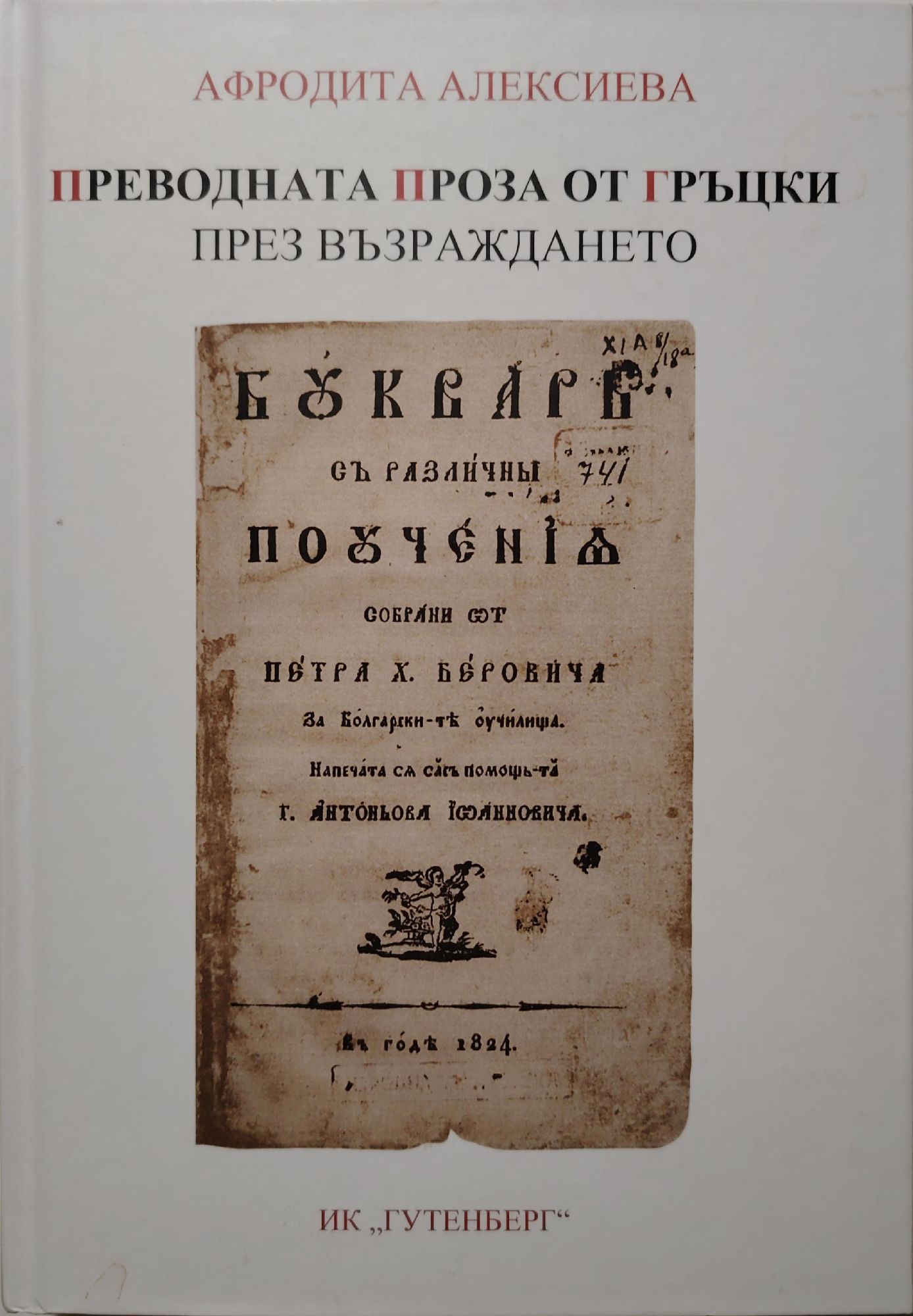 В периода на Българското възраждане преводната литература изиграва важна роля в културното развитие на българите. В този период на основен прелом в българското общество, който неминуемо води до изграждане на ново съзнание и мислене, активното участие на преводната литература е безпорно поради обстоятелството, че българската възрожденска литература не се създава веднага. Съществено звено в преводната възрожденска литература са преводите от гръцки. Става въпрос определено за прозата с ново светско съдържание. Обемът на преводната религиозна литература от гръцки в първите десетилетия на XIX в. е все още значителен, но характерът ѝ ограничава нейната роля в този период. Поради това тя не влиза в обсега на това изследване. С настоящата монография са засегнати въпросите за преводната проза от гръцки в контекста на цялостното ни литературно развитие през възрожденския период и в сравнителен план с културното развитие на другите балкански народи. Съществено място е отделено на рецепцията на гръцката книга у нас и на западноевропейските оригинали преведени от гръцки, както и на отношението преводна книжнина от гръцки и българска читателска публика. Сборникът дълго чака своето преиздаване и може да се разглежда самостоятелно или във връзка с другата монография от Афродита Алексиева „Книжовно наследство на българи на гръцки език през XIX век“.