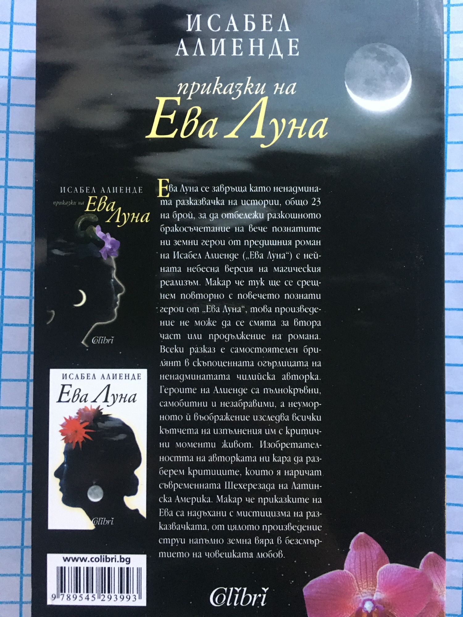 Ева Луна се завръща като ненадмината разказвачка на истории, общо 23 на брой, за да отбележи разкошното бракосъчетание на вече познатите ни земни герои от предишния роман на Исабел Алиенде („Ева Луна“) с нейната небесна версия на магическия реализъм. Макар че тук ще се срещнем повторно с повечето познати герои от „Ева Луна“, това произведение не може да се смята за втора част или продължение на романа. Всеки разказ е самостоятелен брилянт в скъпоценната огърлицата на ненадминатата чилийска авторка. Героите на Алиенде са пълнокръвни, самобитни и незабравими, а неуморното й въображение изследва всички кътчета на изпълнения им с критични моменти живот. Изобретателността на авторката ни кара да разберем критиците, които я наричат съвременната Шехерезада на Латинска Америка. Макар че приказките на Ева са надъхани с мистицизма на разказвачката, от цялото произведение струи напълно земна вяра в безсмъртието на човешката любов.