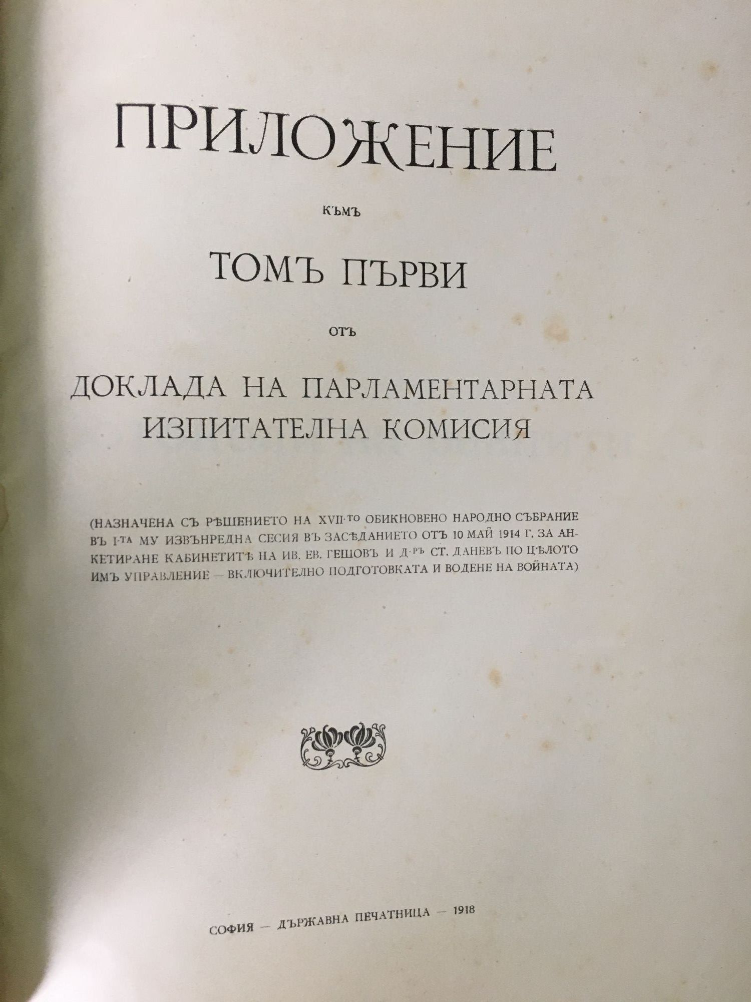 Приложение къмъ томъ първи отъ доклада на парламентарната изпитателна комисия