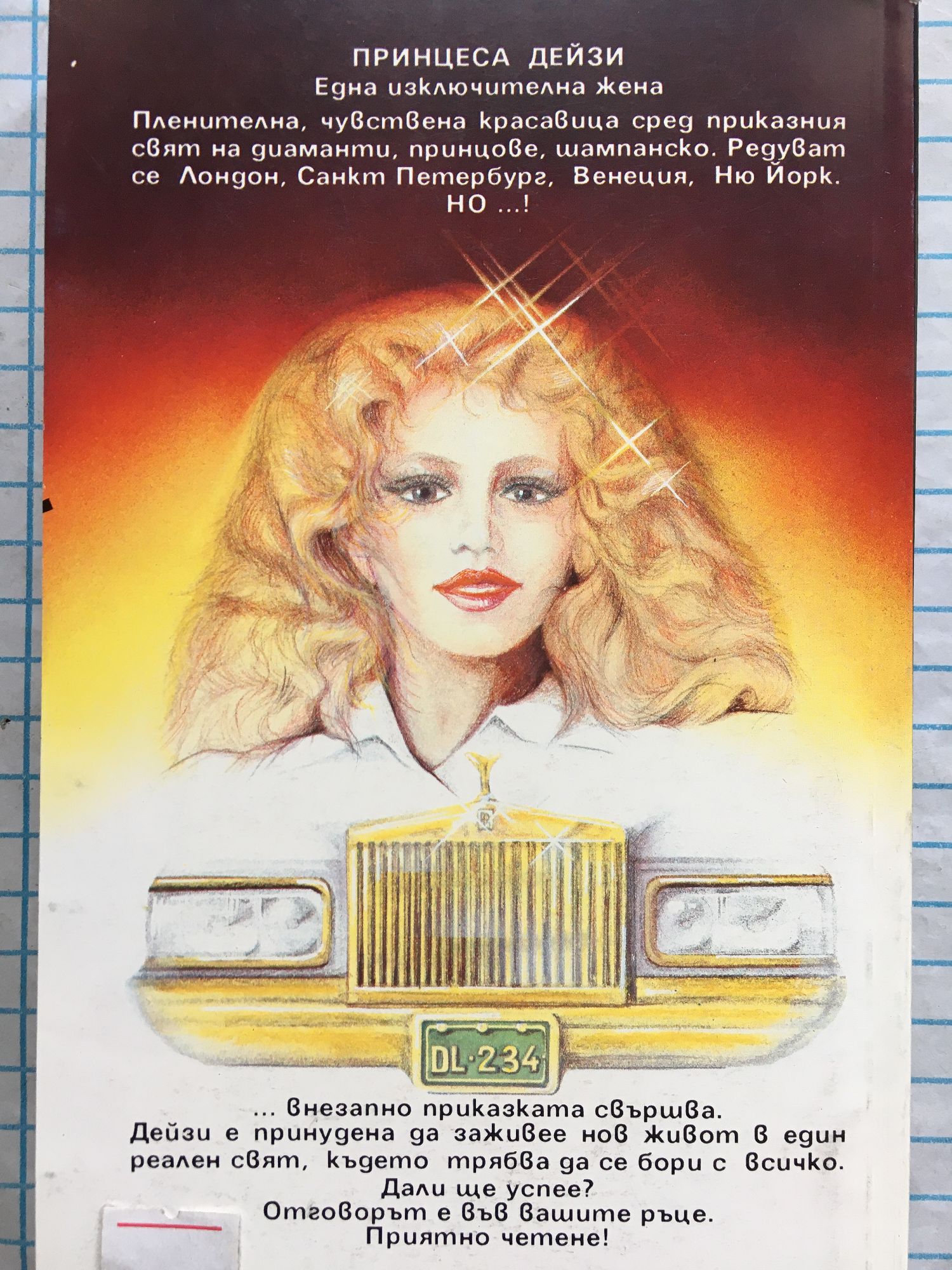 Принцеса Дейзи — една изключителна жена. Пленителна, чувствена красавица сред приказния свят на диаманти, принцове, шампанско. Редуват се Лондон, Санкт Петербург, Венеция, Ню Йорк. Но…! … внезапно приказката свършва. Дейзи е принудена да заживее нов живот в един реален свят, където трябва да се бори с всичко. Дали ще успее? Отговорът е във вашите ръце. Приятно четене!