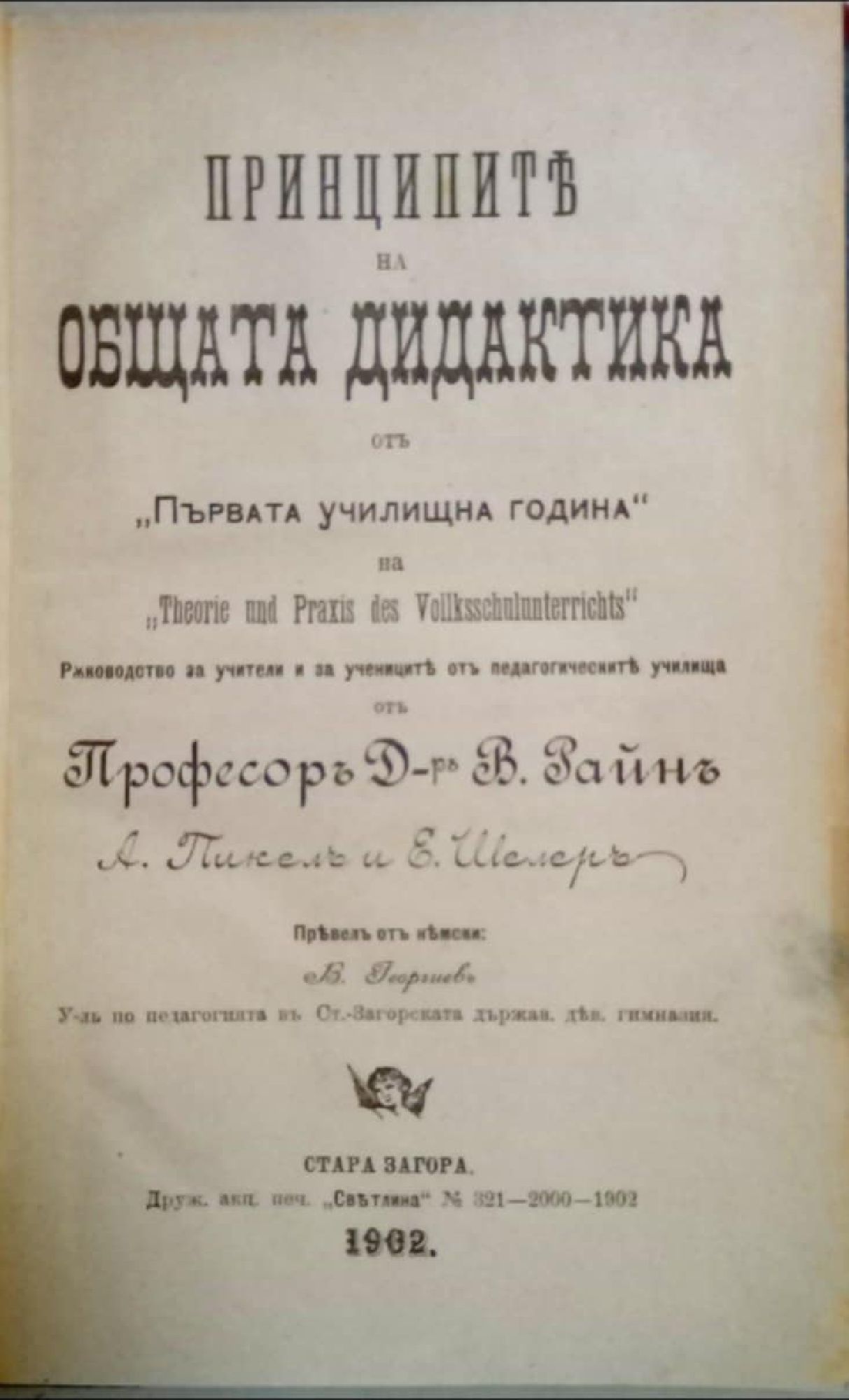 Принципите на общата дидактика отъ (от) "Първата училищна година" на "Theorie und Praxis des Volksschulunterrichts". Жертва
