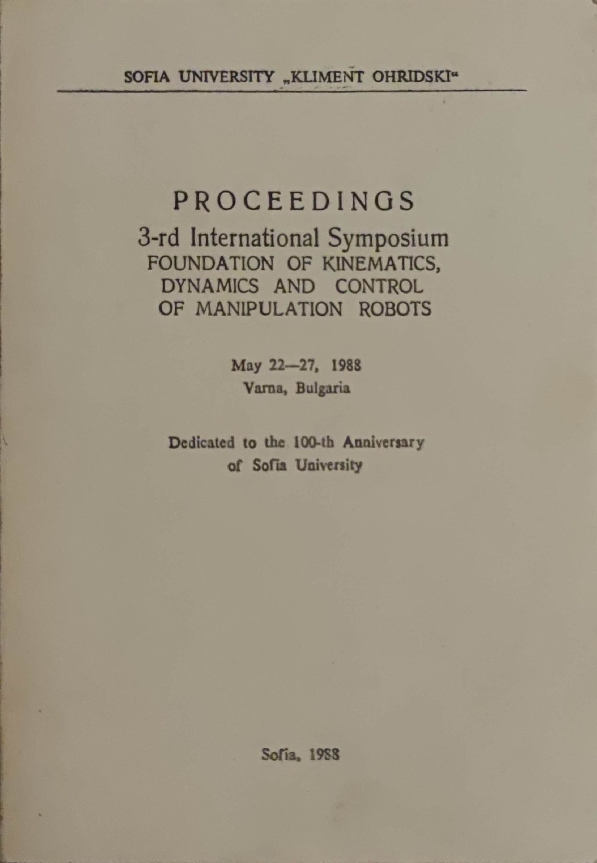 Proceedings. 3-rd International Symposium. Foundation of kinematics, dynamics and control of manipulation robots/ Доклади. 3-ти международен симпозиум. Основи на кинематиката, динамиката и управлението на манипулационни роботи