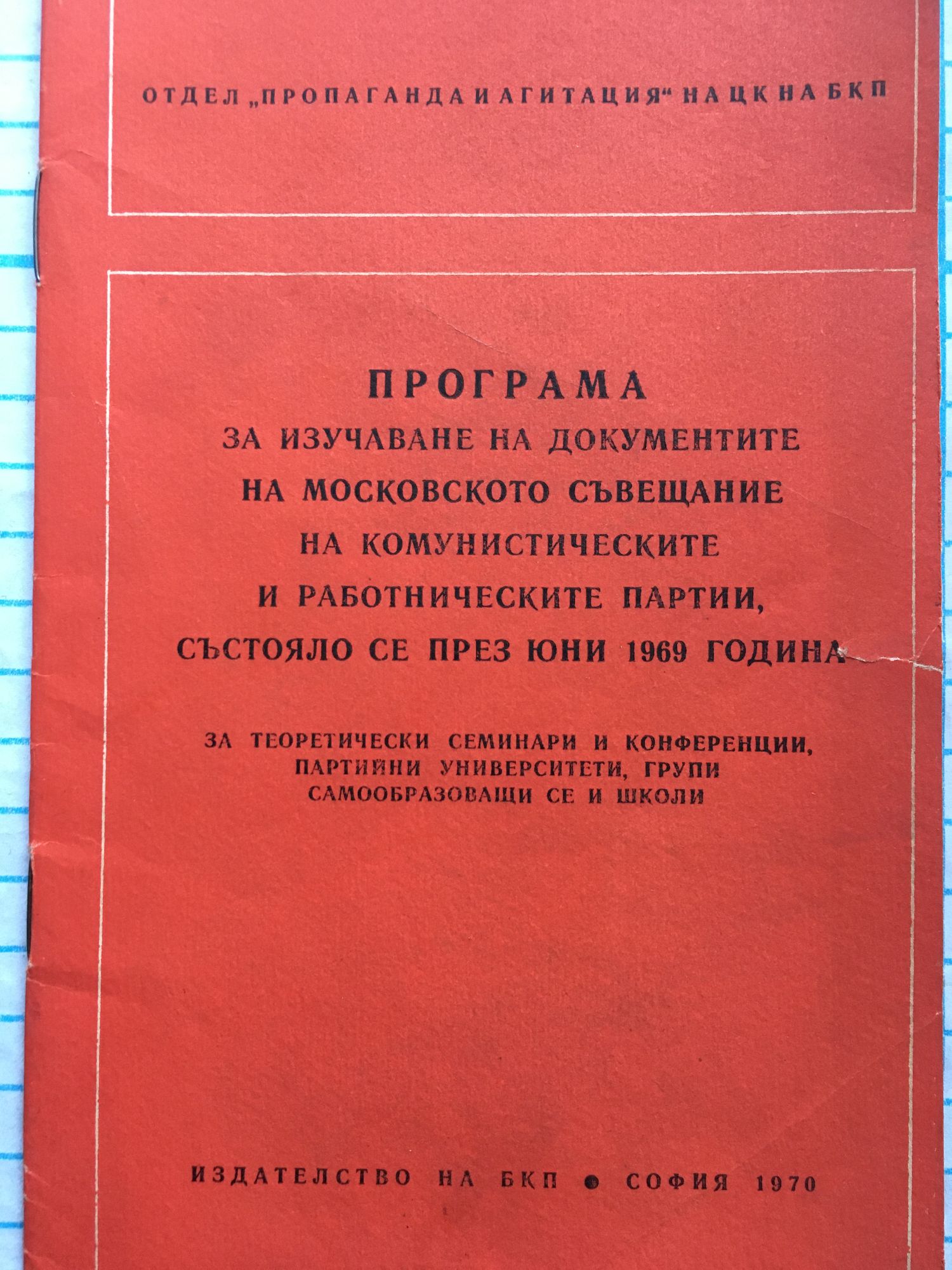 Програма за изучаване на документите на московското съвещание на комунистическите и работническите партии. Състояло се през юни 1969 година