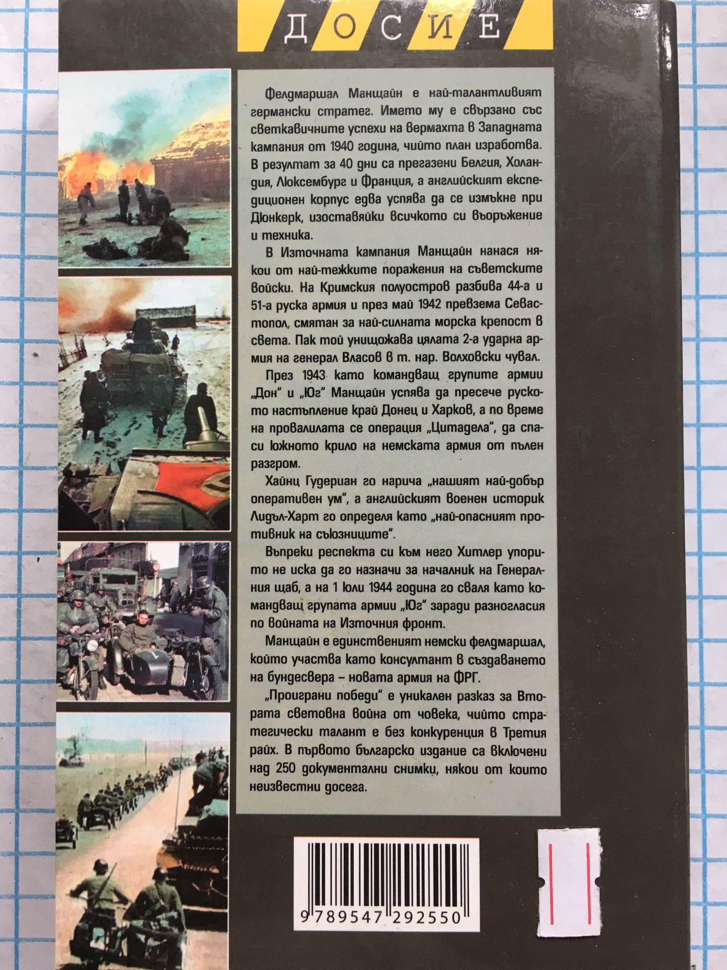 Фелдмаршал Манщайн е най-талантливият германски стратег. Името му е свързано със светкавичните успехи на вермахта в Западната кампания от 1940 година, чийто план изработва. В резултат за 40 дни са прегазени Белгия, Холандия, Люксембург и Франция, а английския експедиционен корпус едва успява да се измъкне при Дюнкерк, изоставяйки всичкото си въоръжение и техника. В Източната кампания Манщайн нанася някои от най-тежките поражения на съветските войски. На Кримския полуостров разбива 44-а и 51-а руска армия и през май 1942 превзема Севастопол, смятан за най-силната морска крепост в света. Пак той унищожава цялата 2-а ударна армия на генерал Власов в т.нар. Волховски чувал. През 1943 като командващ групите армии "Дон" и "Юг" Манщайн успява да пресече руското настъпление край Донец и Харков, а по време на провалилата се операция "Цитадела", да спаси южното крило на немската армия от пълен разгром. Хайнц Гудериан го нарича "нашият най-добър оперативен ум", а английският военен историк Лидъл-Харт го определя като "най-опасният противник на съюзниците". Въпреки респекта си към него Хитлер упорито не иска да го назначи за началник на Генералния щаб, а на 1 юли 1944 година го сваля като командващ групата армии "Юг" заради разногласия по войната на Източния фронт. Манщайн е единственият немски фелдмаршал, който участва като консултант в създаването на бундесвера - новата новата армия на ФРГ. "Проиграни победи" е уникален разказ за Втората световна война от човека, чийто стратегически талант е без конкуренция в Третия райх. В първото българско издание са включени 250 документални снимки, някои от които неизвестни досега.