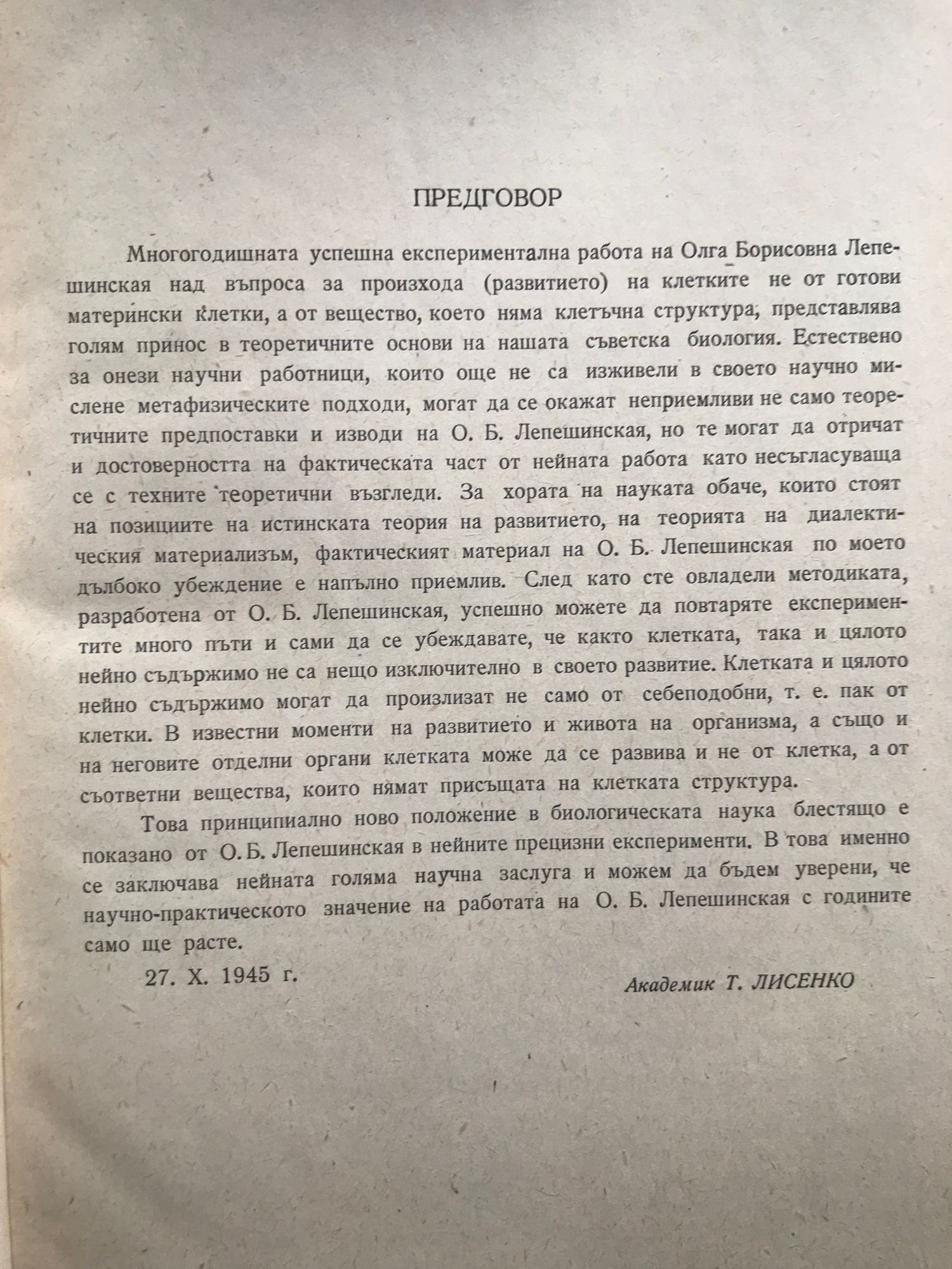 от проф. О. Б. Лепешинская