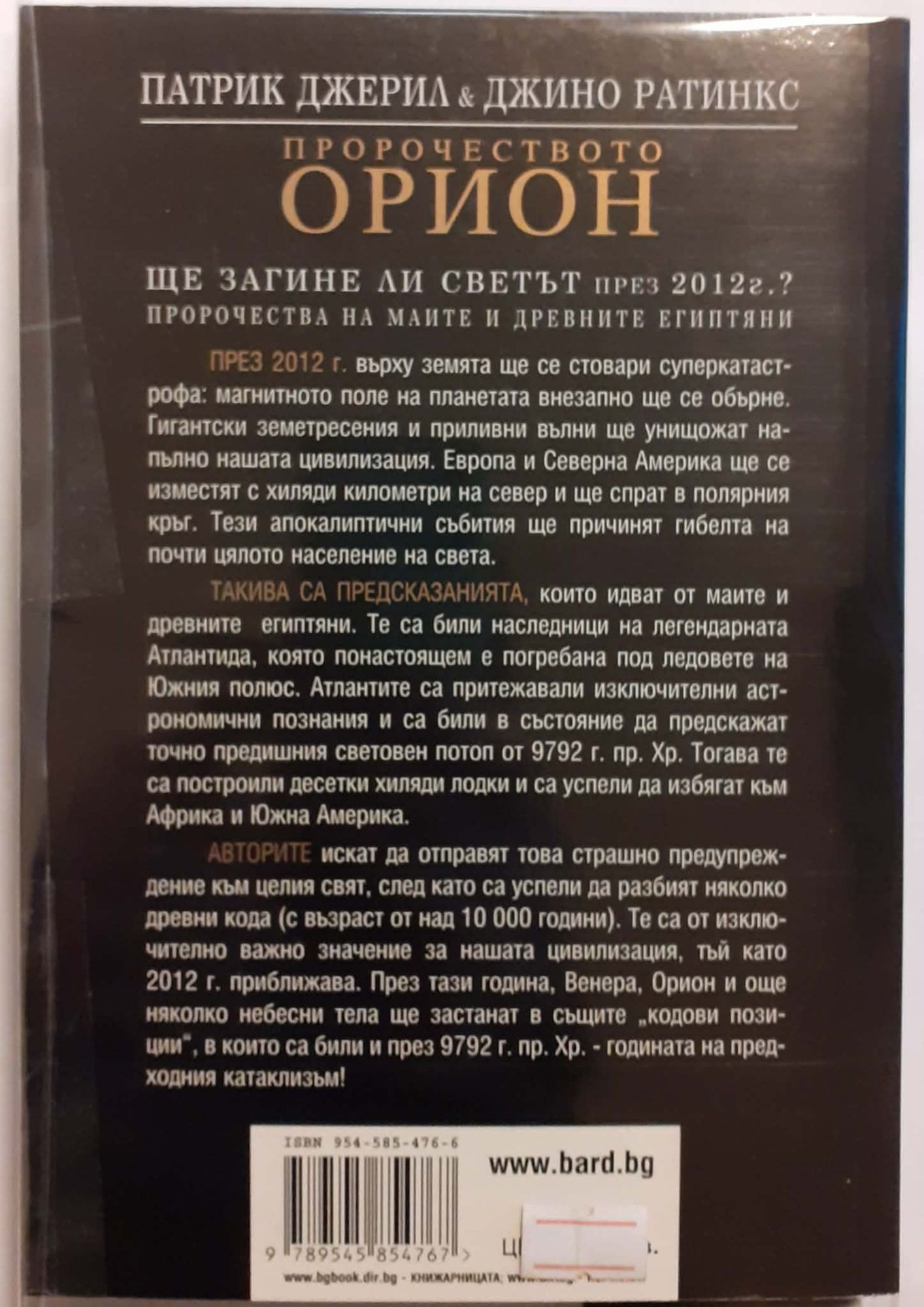ПРОРОЧЕСТВА НА МАИТЕ И ДРЕВНИТЕ ЕГИПТЯНИ за 2012 г.: върху земята ще се стовари суперкатастрофа: магнитното поле на планетата внезапно ще се обърне. Гигантски земетресения и приливни вълни ще унищожат напълно нашата цивилизация. Европа и Северна Америка ще се изместят с хиляди километри на север и ще спрат в полярния кръг.Тези апокалиптични събития ще причинят гибелта на почти цялото население на света. ТАКИВА СА ПРЕДСКАЗАНИЯТА, които идват от маите и древните египтяни. Те са били наследници на легендарната Атлантида, която понастоящем е погребана под ледовете на Южния полюс. Атлантите са притежавали изключителни астрономични познания и са били в състояние да предскажат точно предишния световен потоп от 9792 г. пр. Хр. Тогава те са построили десетки хиляди лодки и са успели да избягат към Африка и Южна Америка. АВТОРИТЕ искат да отправят това страшно предупреждение към целия свят, след като са успели да разбият няколко древни кода (с възраст от над 10 000 години). Те са от изключително важно значение за нашата цивилизация.