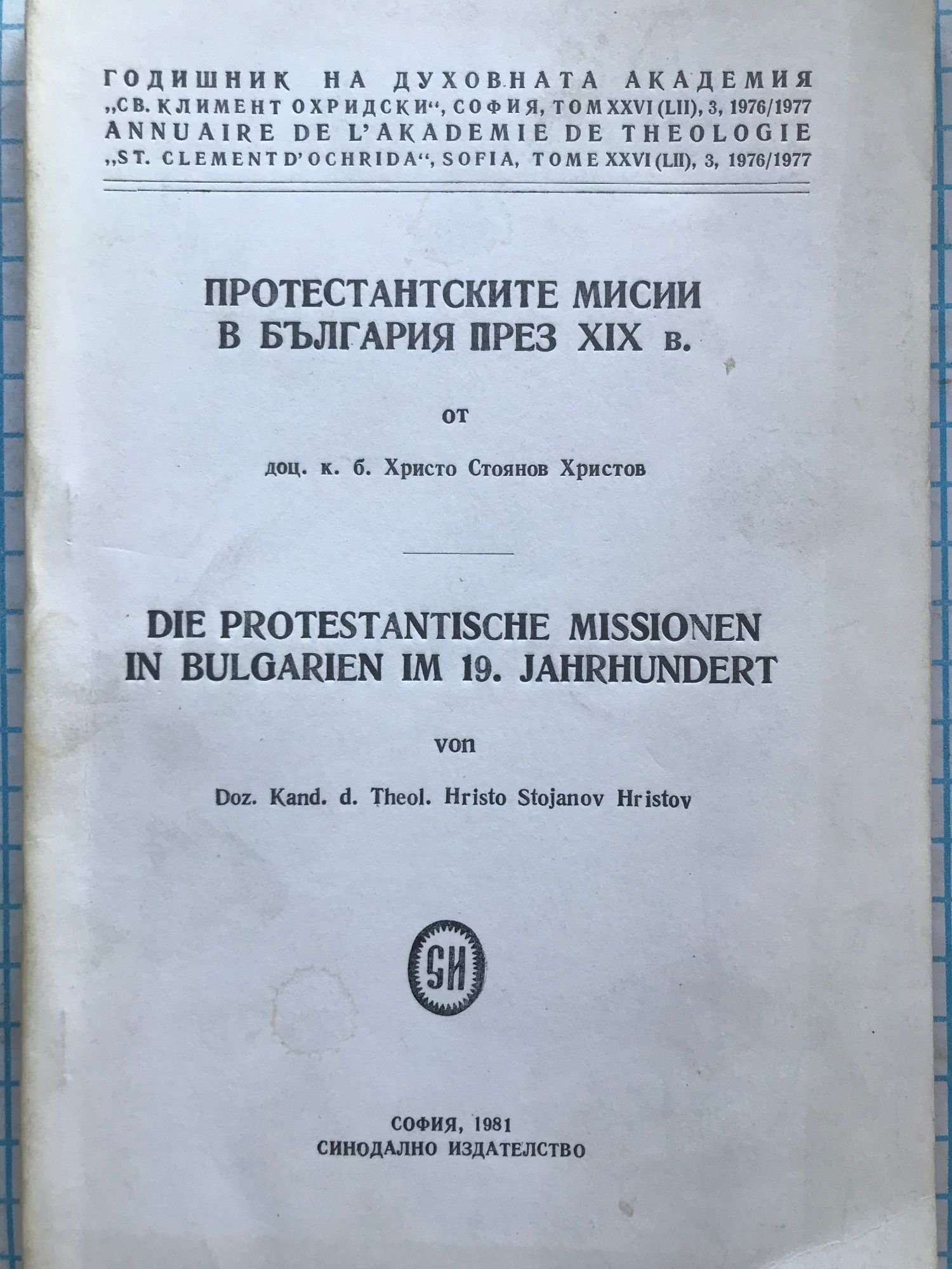 Die protestantische Missionen in Bulgarien im 19. Jahrhundert - резюме на немски език.