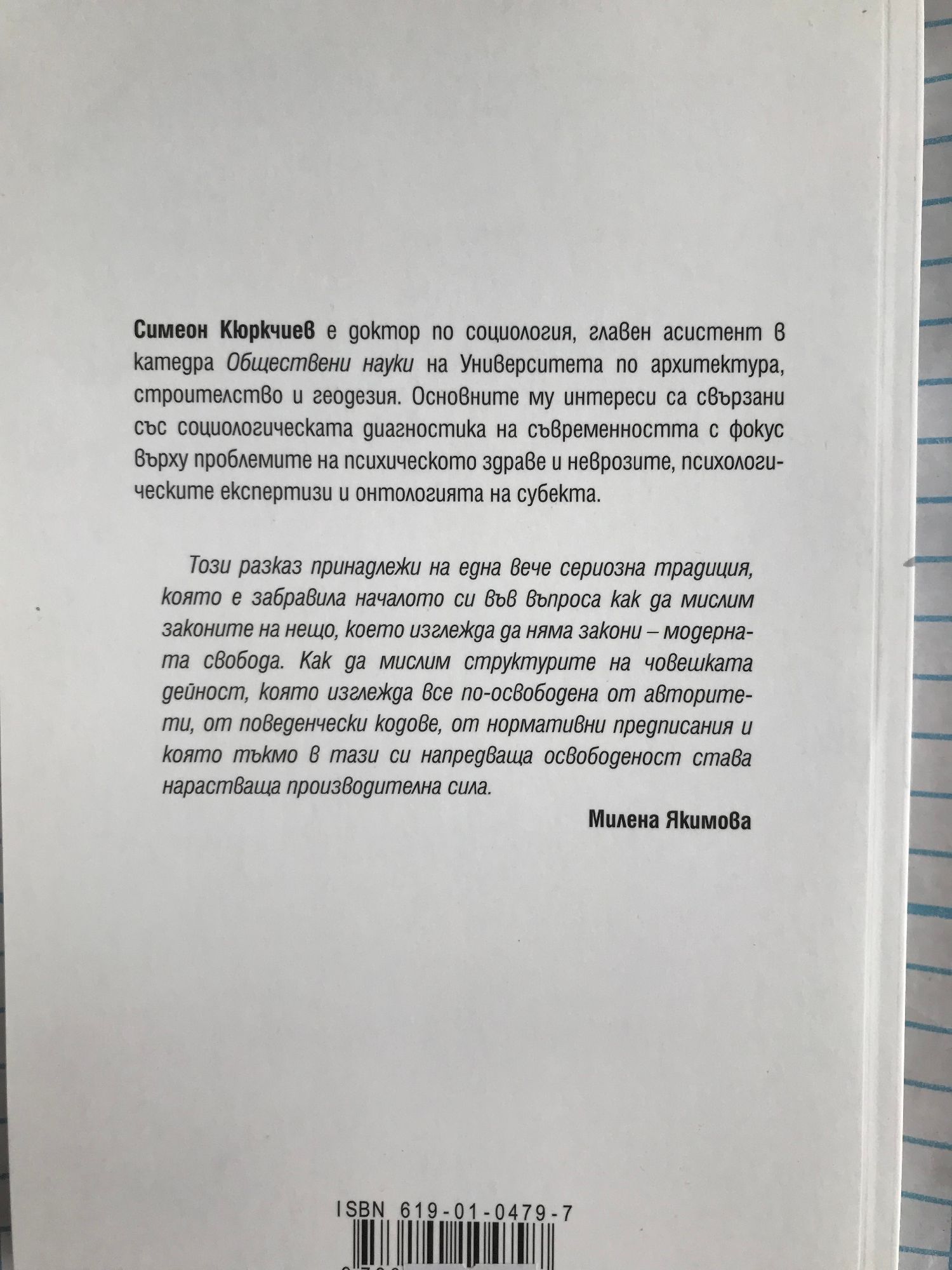 Този разказ принадлежи на една вече сериозна традиция, която е забравила началото си във въпроса как да мислим законите на нещо, което изглежда да няма закони – модерната свобода. Как да мислим структурите на човешката дейност, която изглежда все по-освободена от авторитети, от поведенчески кодове, от нормативни предписания и която тъкмо в тази си напредваща освободеност става нарастваща производителна сила. - Милена Якимова