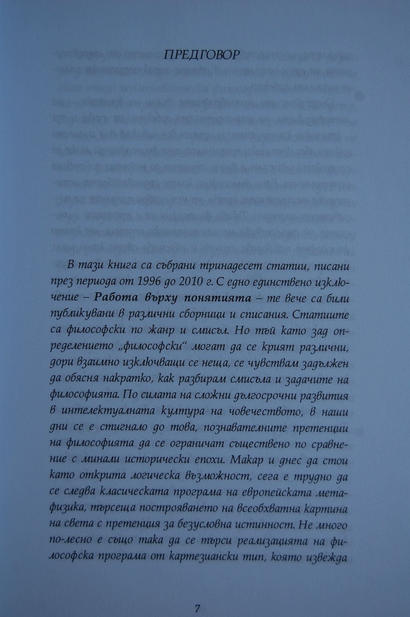 Книгата съдържа тринадесет философски статии, писани през периода 1996-2010г. В основата им е залегнало определено разбиране за философията. Според това разбиране не съществува метаисторическа позиция, от която философите наблюдават, описват и обясняват света като цяло.