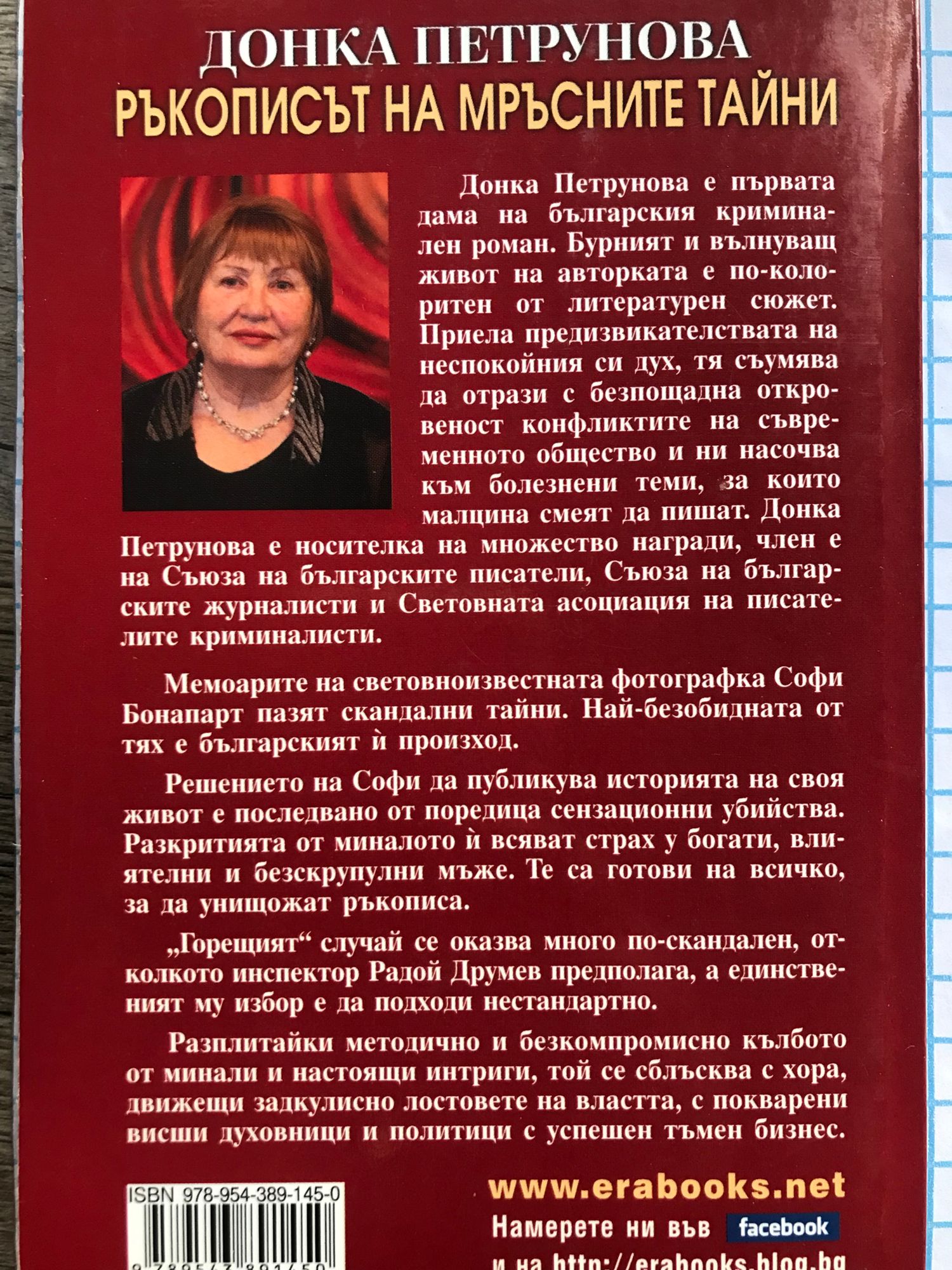 Докато миналото е премълчавано, настоящето остава покварено Донка Петрунова е първата дама на българския криминален роман. Нейният бурен и вълнуващ живот е по-колоритен от литературен сюжет. Приела предизвикателствата на неспокойния си дух, тя съумява да отрази с безпощадна откровеност конфликтите на съвременното общество, за които малцина смеят да пишат. Донка Петрунова е носителка на множество награди, член е на Съюза на българските писатели, Съюза на българските журналисти и Световната асоциация на писателите криминалисти. Мемоарите на световноизвестната фотографка Софи Бонапарт пазят скандални тайни. Най-безобидната от тях е българският й произход. Решението на Софи да публикува историята на своя живот е последвано от поредица сензационни убийства. Разкритията от миналото й всяват страх у богати, влиятелни и безскрупулни мъже. Те са готови на всичко, за да унищожат ръкописа. „Горещият” случай се оказва много по-скандален, отколкото инспектор Радой Друмев предполага, а единственият му избор е да подходи нестандартно. Разплитайки методично и безкомпромисно кълбото от минали и настоящи интриги, той се сблъсква с хора, движещи задкулисно лостовете на властта, с покварени висши духовници и политици с успешен тъмен бизнес.