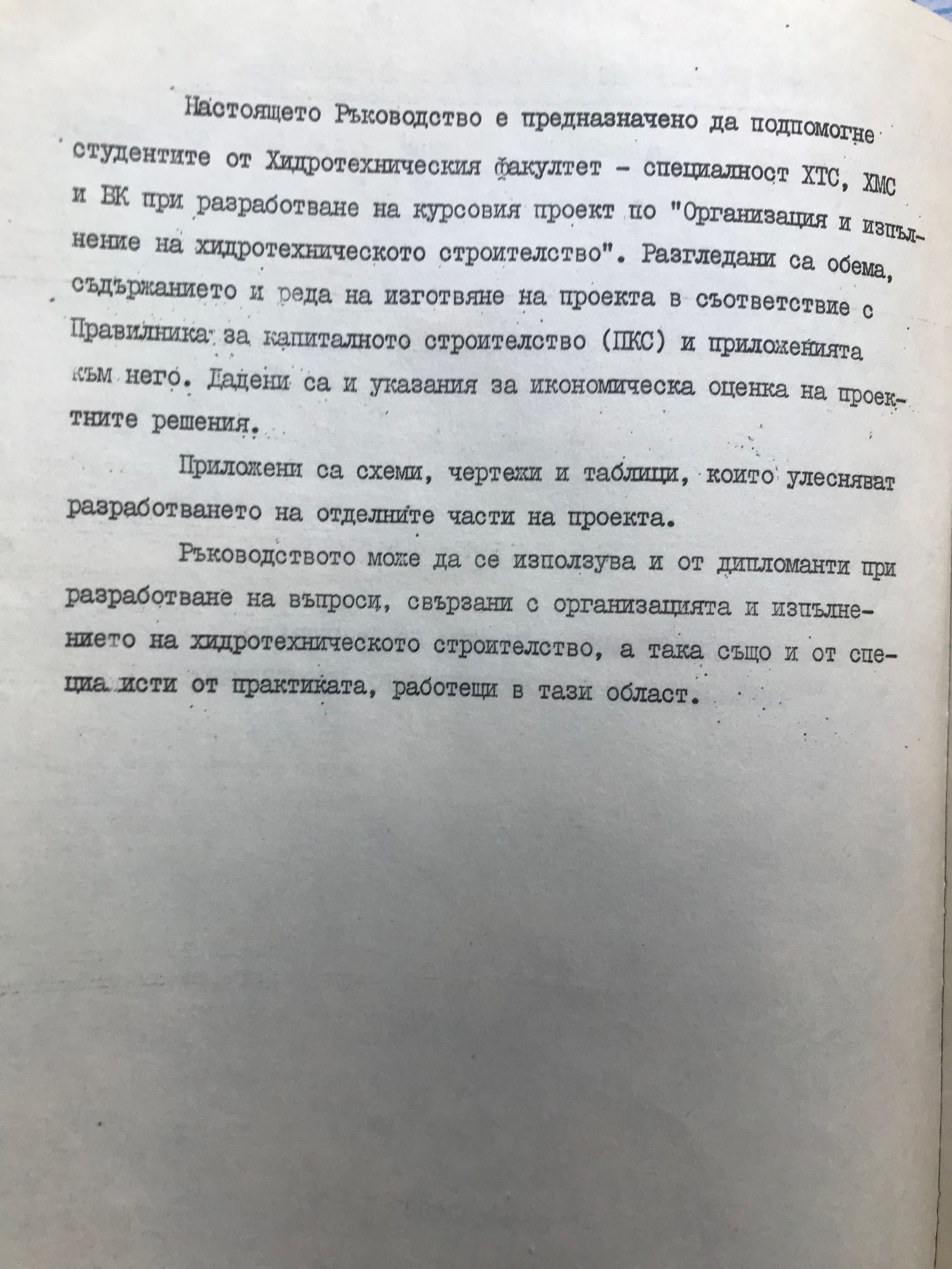 Ръководство за разработване на проекта по организация и изпълнение на хидротехническото строителство