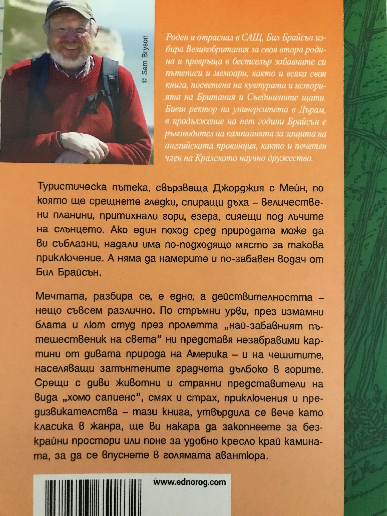 Туристическата пътека, свързваща Джорджия с Мейн, предлага спиращи дъха гледки на величествени планини, притихнали гори и езера, сияещи под лъчите на слънцето, а няма да намерите и по-забавен водач от Бил Брайсън. Така че приключението започва. Мечтата, разбира се, е едно, а действителността – нещо съвсем различно. По стръмни урви, през измамни блата и лют студ през пролетта „най-забавният пътешественик на света” ни представя незабравими картини от дивата природа на Америка – и на чешитите, населяващи затънтените градчета дълбоко в горите. Срещи с диви животни и странни представители на вида “хомо сапиенс”, смях и страх, приключения и предизвикателства – тази книга, утвърдила се вече като класика в жанра, ще ви накара да закопнеете за безкрайни простори или поне за удобно кресло край камината, за да се впуснете в голямата авантюра.