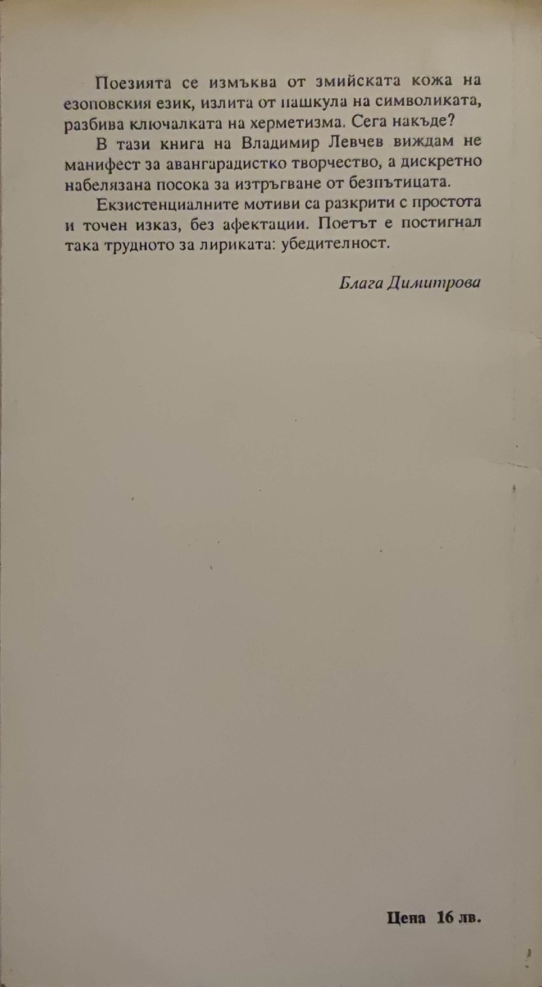 11,25 € / 22,00 лв.Много добро състояние на книжното тяло. С посвещение и автограф.
