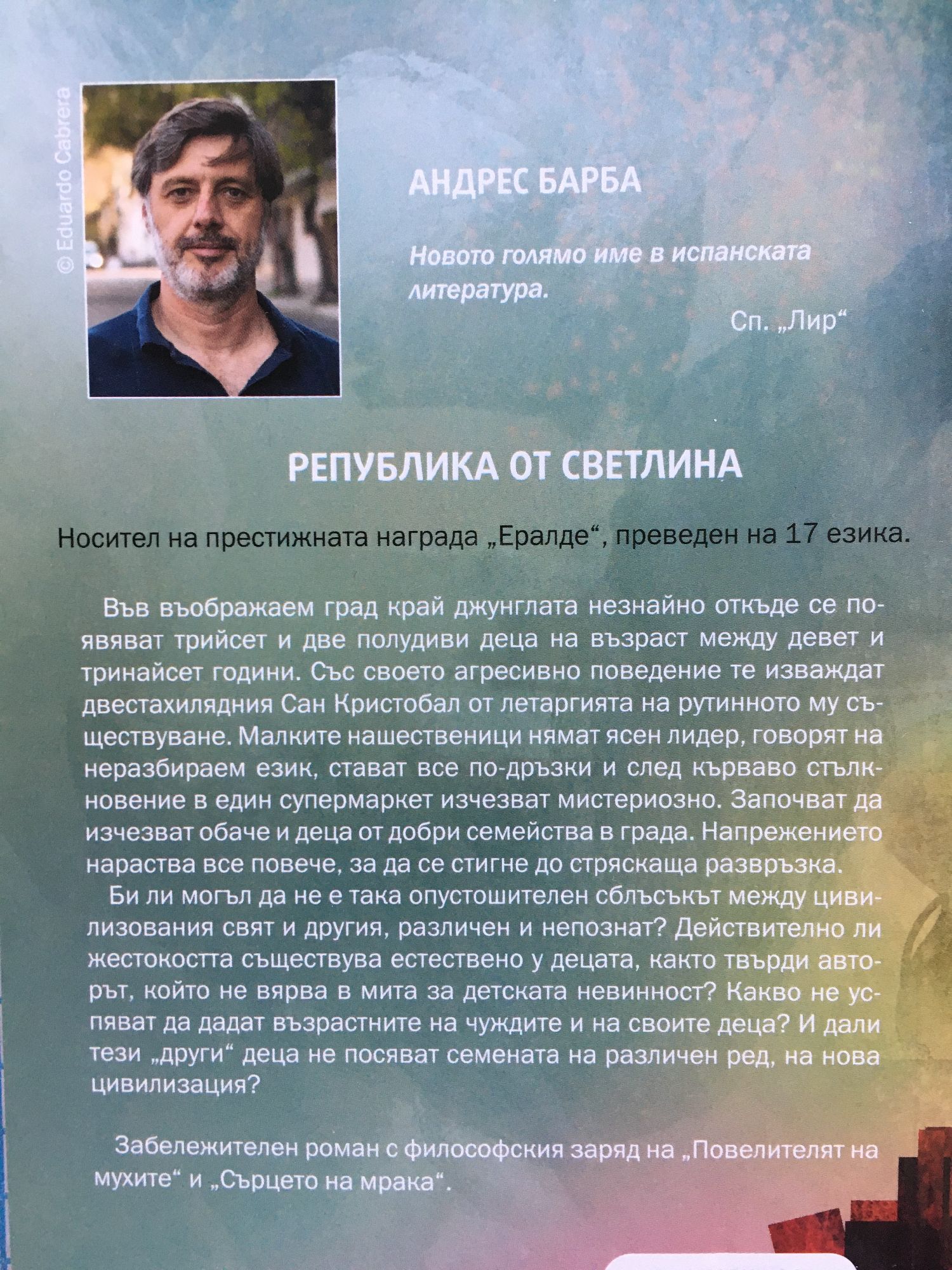 Забележителен роман с философския заряд на „Повелителят на мухите“ и „Сърцето на мрака“. Във въображаем град край джунглата незнайно откъде се появяват трийсет и две полудиви деца на възраст между девет и тринайсет години. Със своето агресивно поведение те изваждат двестахилядния Сан Кристобал от летаргията на рутинното му съществуване. Малките нашественици нямат ясен лидер, говорят на неразбираем език, стават все по-дръзки и след кърваво стълкновение в един супермаркет изчезват мистериозно. Започват да изчезват обаче и деца от добри семейства в града. Напрежението нараства все повече, за да се стигне до стряскаща развръзка. Би ли могъл да не е така опустошителен сблъсъкът между цивилизования свят и другия, различен и непознат? Действително ли жестокостта съществува естествено у децата, както твърди авторът, който не вярва в мита за детската невинност? Какво не успяват да дадат възрастните на чуждите и на своите деца? И дали тези „други“ деца не посяват семената на различен ред, на нова цивилизация? Романът е носител на престижната награда „Ералде“ и е преведен на 17 езика. „Новото голямо име в испанската литература.“ Списание „Лир“