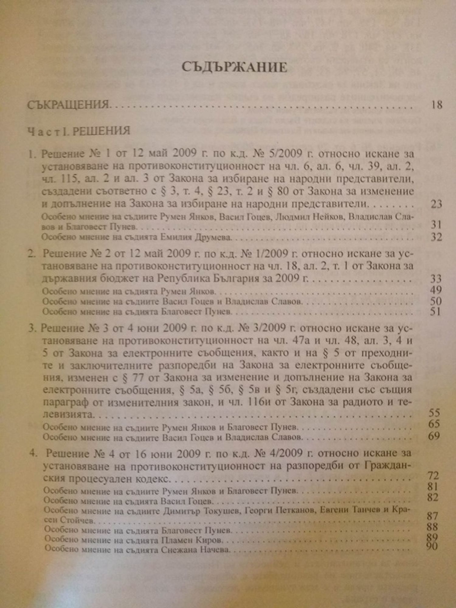 Решения и определения на Конституционния съд на Република България 2009