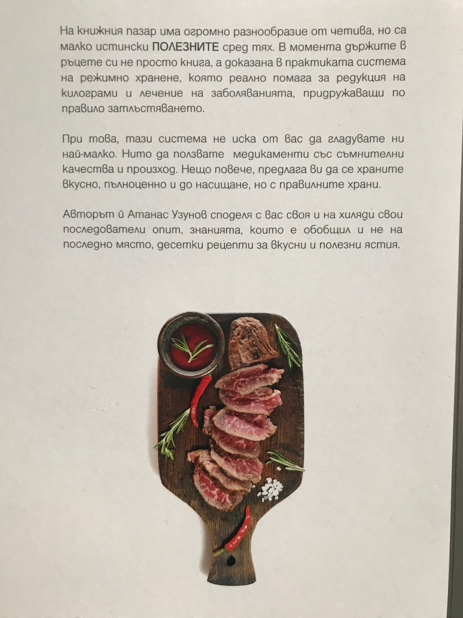 Режимът от Атанас Узунов е книга, в която авторът говори за супер популярния, разработен от него, метод на хранене. Той не само помага скоростно да се свалят килограми, но и се бори с редица болести, придружаващи затлъстяването. Диетата на Атанас Узунов е невероятен хит в неговата Фейсбук група. Оригинал – Отслабвай и бъди здрав с мен – Атанас Узунов вече има над 250,000 последователи, доверили се на автора да ги поведе към един по-здравословен живот с по-малко килограми.