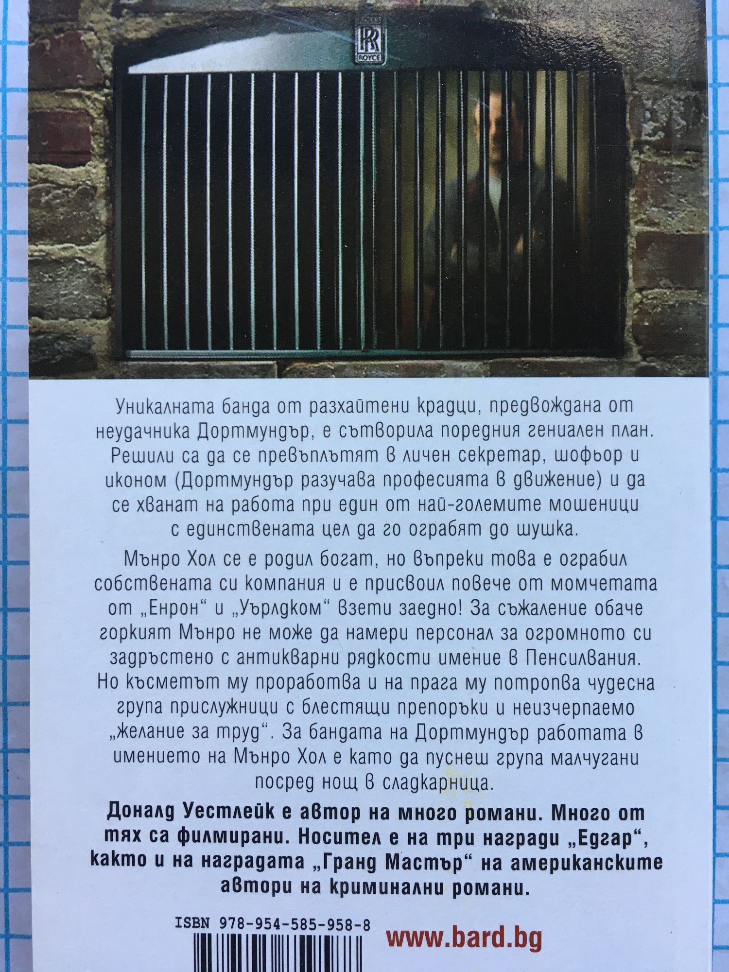 Комичната банда на Дортмундър се залавя за работа! Уникалната банда от разхайтени крадци, предвождана от неудачника Дортмундър, е сътворила поредния гениален план. Решили са да се превъплътят в личен секретар, шофьор и иконом (Дортмундър разучава професията в движение) и да се хванат на работа при един от най-големите мошеници с единствената цел да го ограбят до шушка. Мънро Хол се е родил богат, но въпреки това е ограбил собствената си компания и е присвоил повече от момчетата от „Енрон” и Уърлдком” взети заедно! За съжаление обаче горкият Мънро не може да намери персонал за огромното си задръстено с антикварни рядкости имение в Пенсилвания. Но късметът му проработва и на прага му потропва чудесна група прислужници с блестящи препоръки и неизчерпаемо “желание за труд”. За бандата на Дортмундър работата в имението на Мънро Хол е като да пуснеш група малчугани посред нощ в сладкарница. Доналд Уестлейк е автор на много романи. Много от тях са филмирани. Носител е на три награди „Едгар”, както и на наградата „Гранд Мастър” на американските автори на криминални романи.