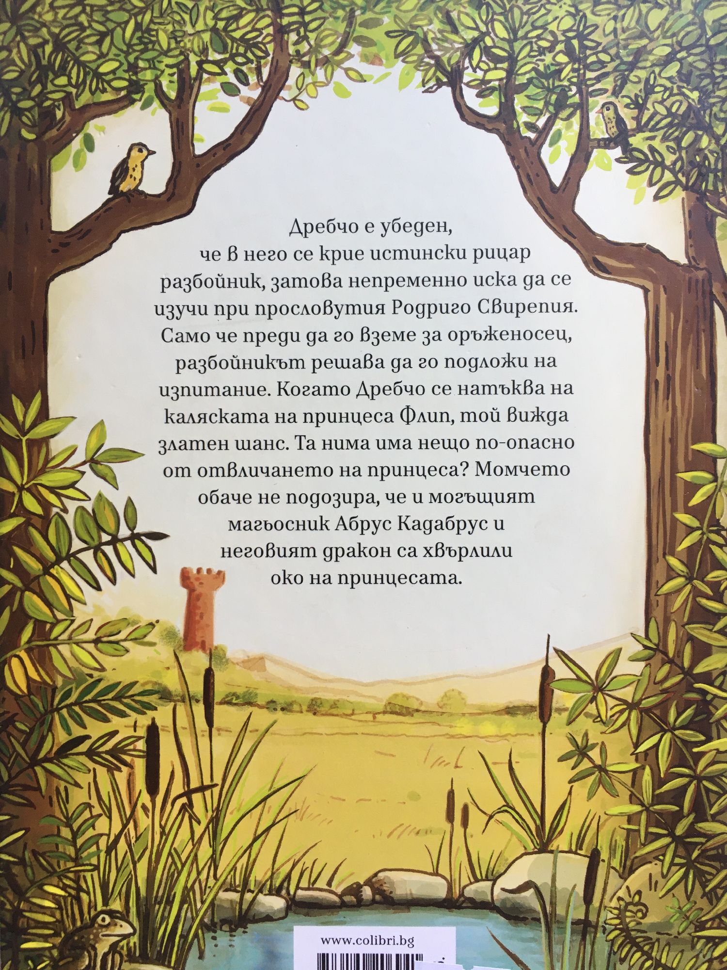 Дребчо е убеден, че в него се крие истински рицар разбойник, затова непременно иска да се изучи при прословутия Родридо Свирепия. Само че преди да го вземе за оръженосец, разбойникът решава да го подложи на изпитание. Когато Дребчо се натъква на каляската на принцеса Флип, той вижда златен шанс. Та нима има нещо по-опасно от отвличането на принцеса? Момчето обаче не подозира, че и могъщият магьосник Абрус Кадабрус и неговият дракон са хвърлили око на принцесата.