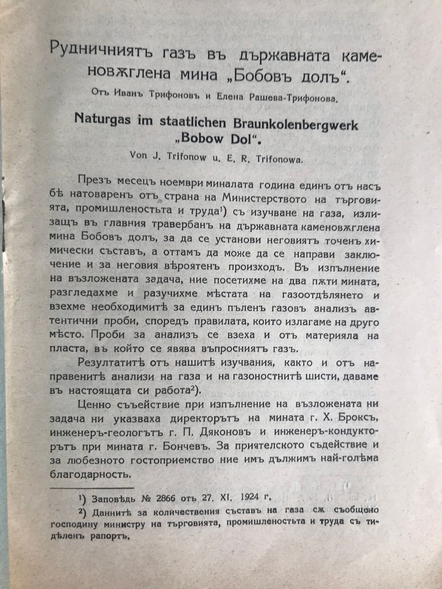 Рудничниятъ газъ въ държавната каменовъглена мина "Бобов Долъ"