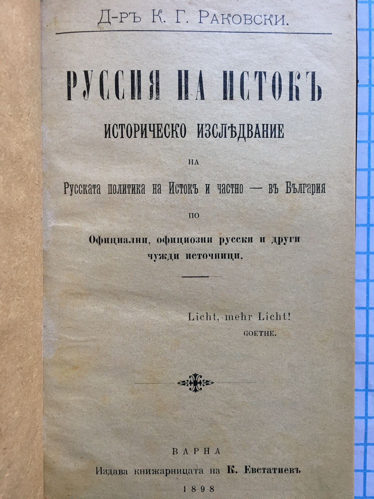 от д-р. К. Г. Раковски