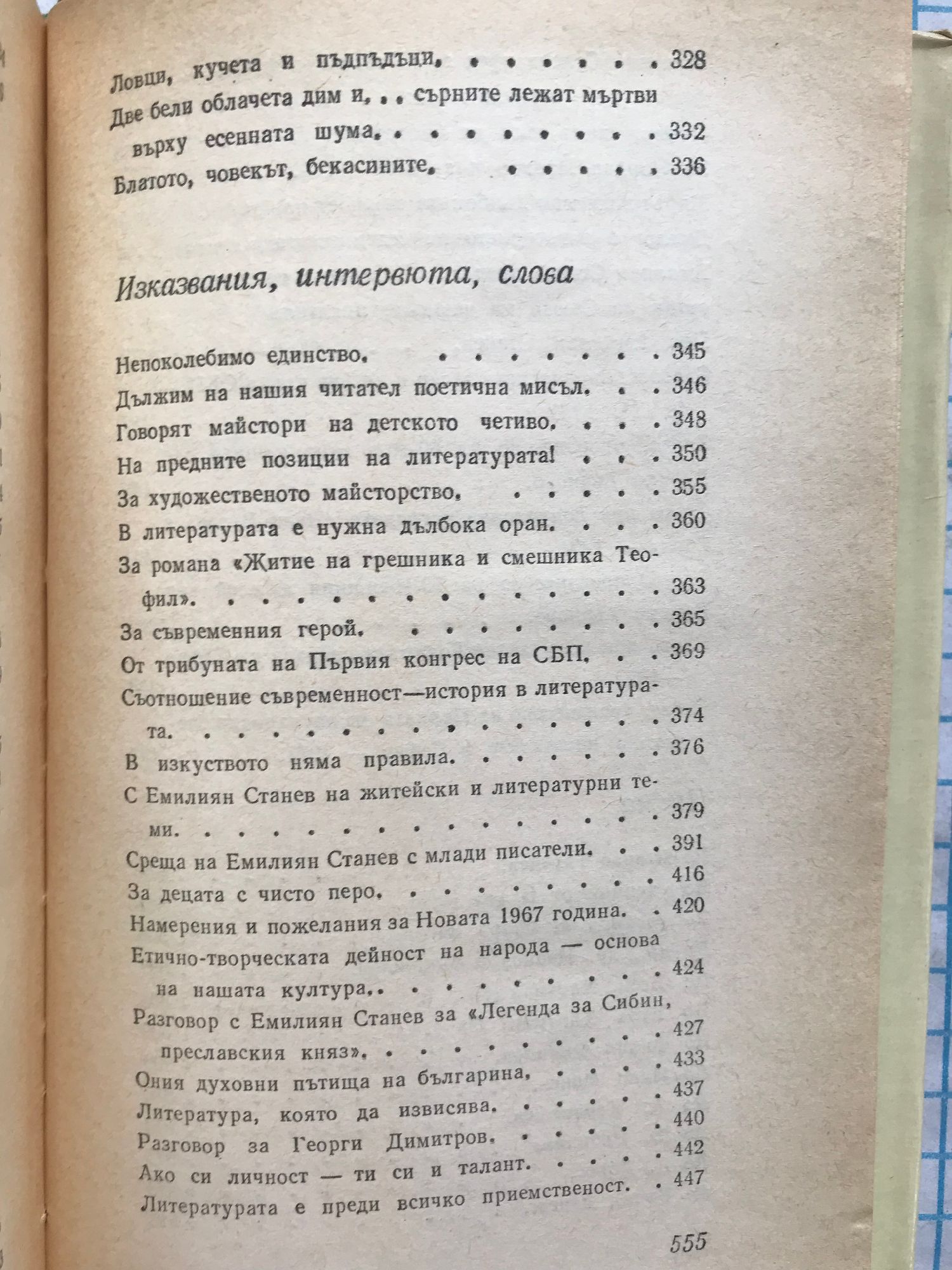 Разкази. Повести. Разкази и повести за деца и юноши. Иван Кондарев - роман в четири части. Легенда за Сибин. Преславски княз. Тихик и Назарий. Антихрист. Недовършени и непубликувани творби. Сценарии. Публицистика. Писма