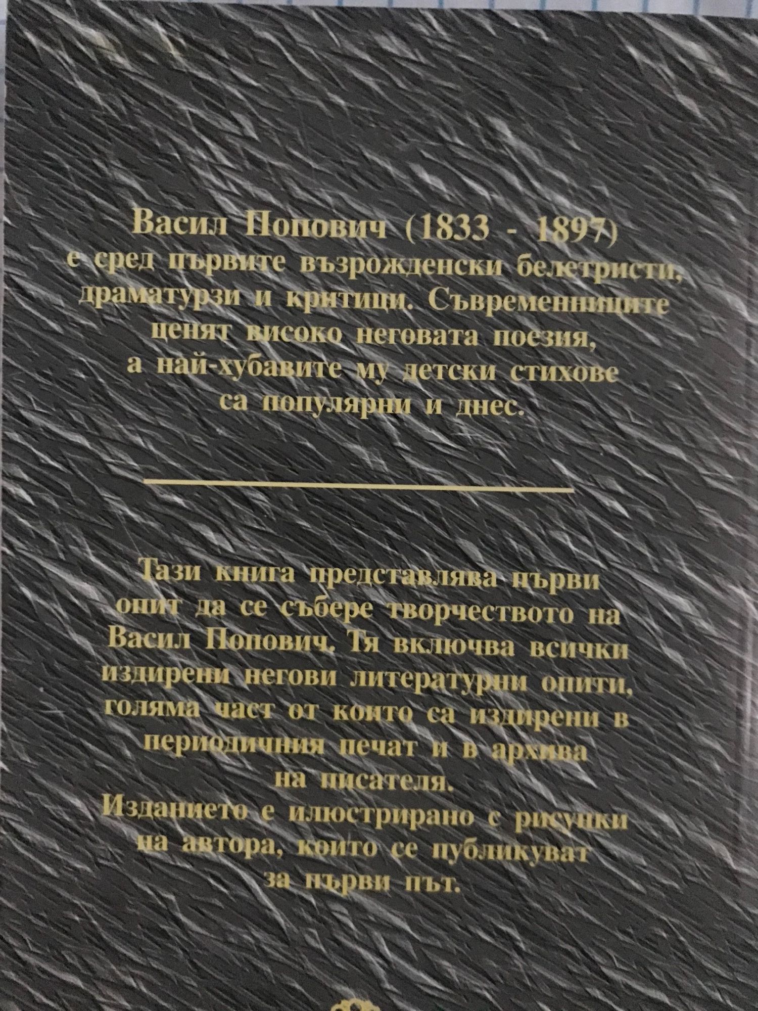 Предлаганото издание е част, несъмнено по-важната, от един по-голям проект, който може да бъде назован по раз лични начини. Напълно допустимо е да се прибягва до думи като възкресение, (пре)откриване, завръщане и пр. - голямата част от произведенията на Васил (Василаки) Попович са практически неизвестни дори и за познавачите на българската литература от XIX в. Въздържам се да използвам подобни патетични думи не само по стилистични причини, но и защото ми се струват неадекватни на мисленето на писателя. Или може би на субективния образ, който съм си изградил за него. Съчиненията на "забравения" възрожденец, заедно с книгата "Васил Попович. Живот и творчество", имат амбицията да добавят важни акценти в съществуващата картина на българската литература и да проблематизират някои съществуващи и почти общоприети представи за нея. Част от непознатите ранни текстове подтикват към преосмисляне на разбиранията за началото на новата белетристика и други утвърдени тези. С несъмнените си достойнства някои от текстовете, струва ми се, имат място в канона на националната словесност. Бих си позволил да прибавя, че творчеството на В. Попович като цяло предлага различни посоки на преосмисляне на българската литература, а и на българската култура, включително и на манталитетите и стереотипите, които съществуват в нея през XIX в. или чрез които българският XX в. чете собственото си минало. Изкушавам се да маркирам въпросите за изграждането на националната митология и нейното проблематизиране, за популярното и елитарното, за сложните взаимоотношения между факт и фикция, между прототипи и литературни персонажи, за психологическите мотиви, които определят тези взаимоотношения. Това изреждане лесно може да бъде продължено. Споменатите проблеми предполагат задълбочено анализиране, при това от различни гледни точки. Опитах се да ги разгледам в спомената книга, но очевидно и в бъдеще ще се връщам към тях. Надявам се, че и други ще го сторят - творчеството на Васил Попович заслужава, да бъде прочетено, за първи път - в неговата цялост.