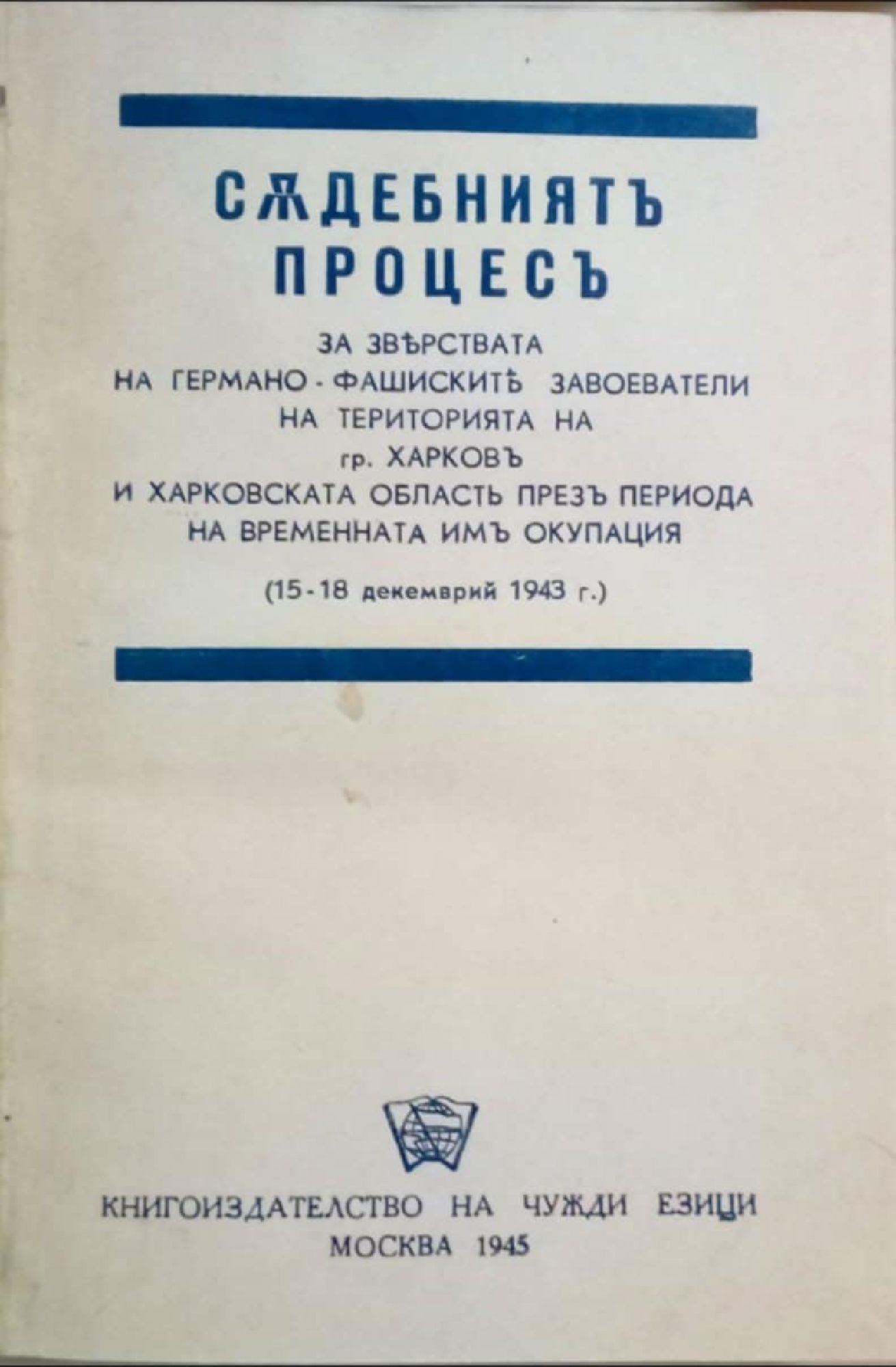 Съдебниятъ процесъ за зверствата на германо-фашистките завоеватели на територията на гр. Харковъ и Харковската областъ презъ периода на временната имъ окупация (15 - 18 декемврий 1943 г.) / Съдебният процес за зверствата на германо-фашистките завоеватели на територията на гр. Харков и Харковската област през периода на временната им окупация