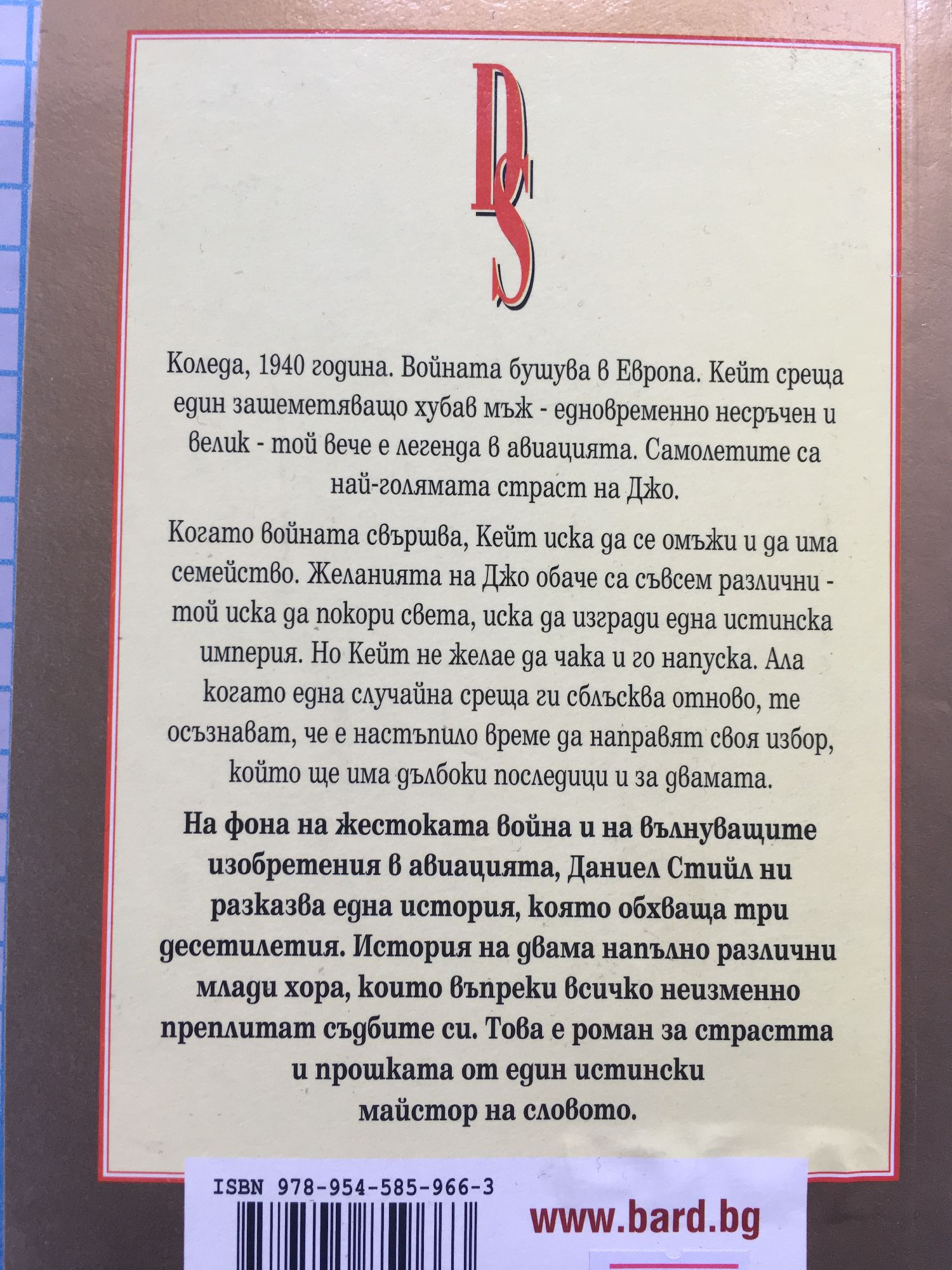 Коледа, 1940 година. Войната бушува в Европа. Кейт среща един зашеметяващо хубав мъж - едновременно несръчен и велик - той вече е легенда в авиацията. Самолетите са най-голямата страст за Джо. Когато войната свършва, Кейт иска да се омъжи и да има семейство. Желанията на Джо обаче са съвсем различни – той иска да покори света, иска да изгради една истинска империя. Но Кейт не желае да чака и го напуска. Но когато една случайна среща ги сблъсква отново, те осъзнават, че е настъпило време да направят своя избор, който ще има дълбоки последици и за двамата. На фона на жестоката война и на вълнуващите изобретения в авиацията, Даниел Стийл ни разказва една история, която обхваща три десетилетия. История на двама напълно различни млади хора, които въпреки всичко неизменно вплитат живота с другия. Това е роман за страстта и прошката от един истински майстор на словото.