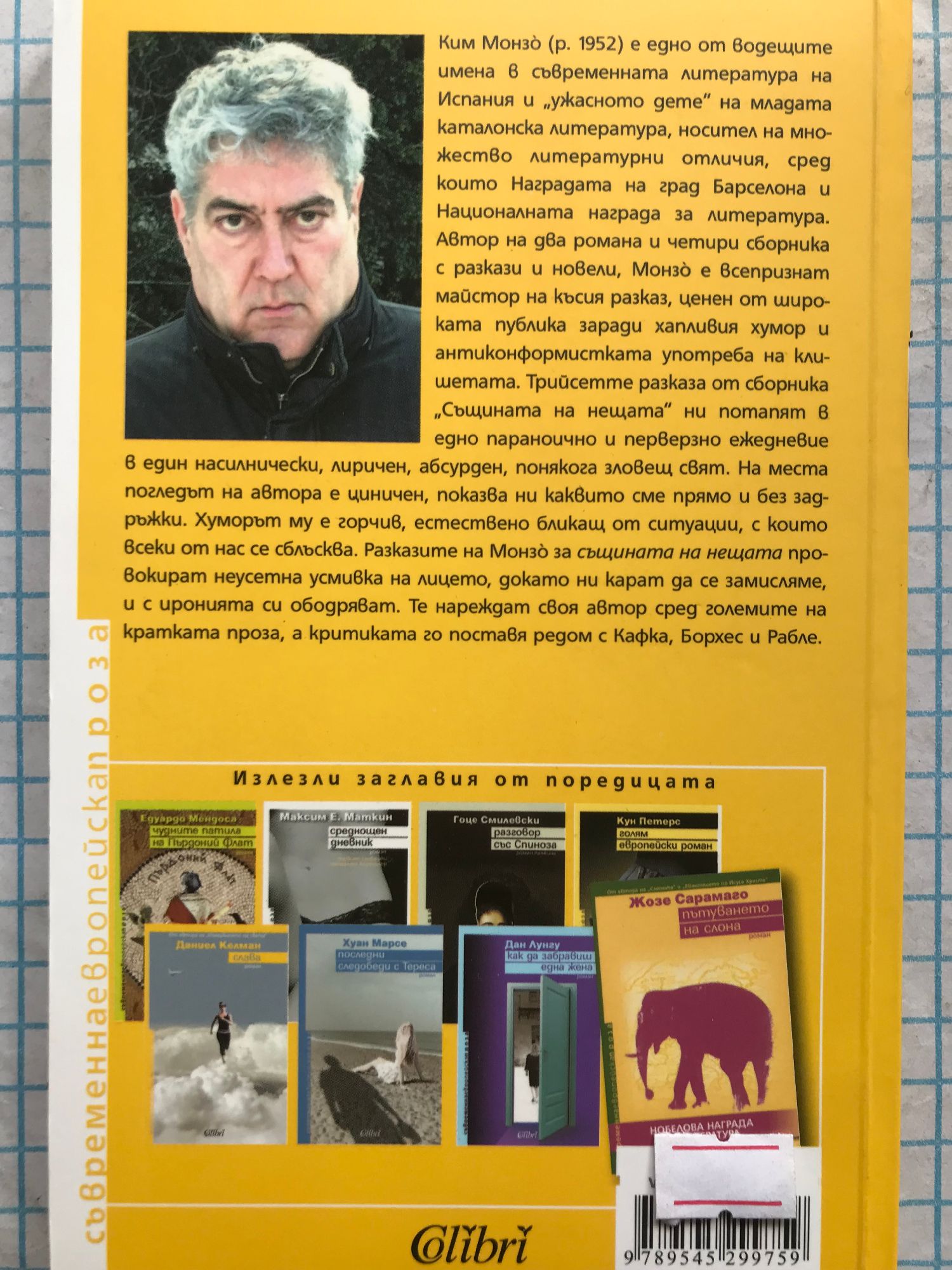 Ким Монзо е едно от водещите имена в съвременната литература на Испания и "ужасното дете" на младата каталонска литература, носител на множество литературни отличия, сред които Наградата на град Барселона и Националната награда за литература. Монзо е всепризнат майстор на късия разказ, ценен от широката публика заради хапливия хумор и антиконформистката употреба на клишетата. Трийсетте разказа от сборника "Същината на нещата" ни потапят в едно параноично и перверзно ежедневие, в един насилнически, лиричен, абсурден, понякога зловещ свят.
