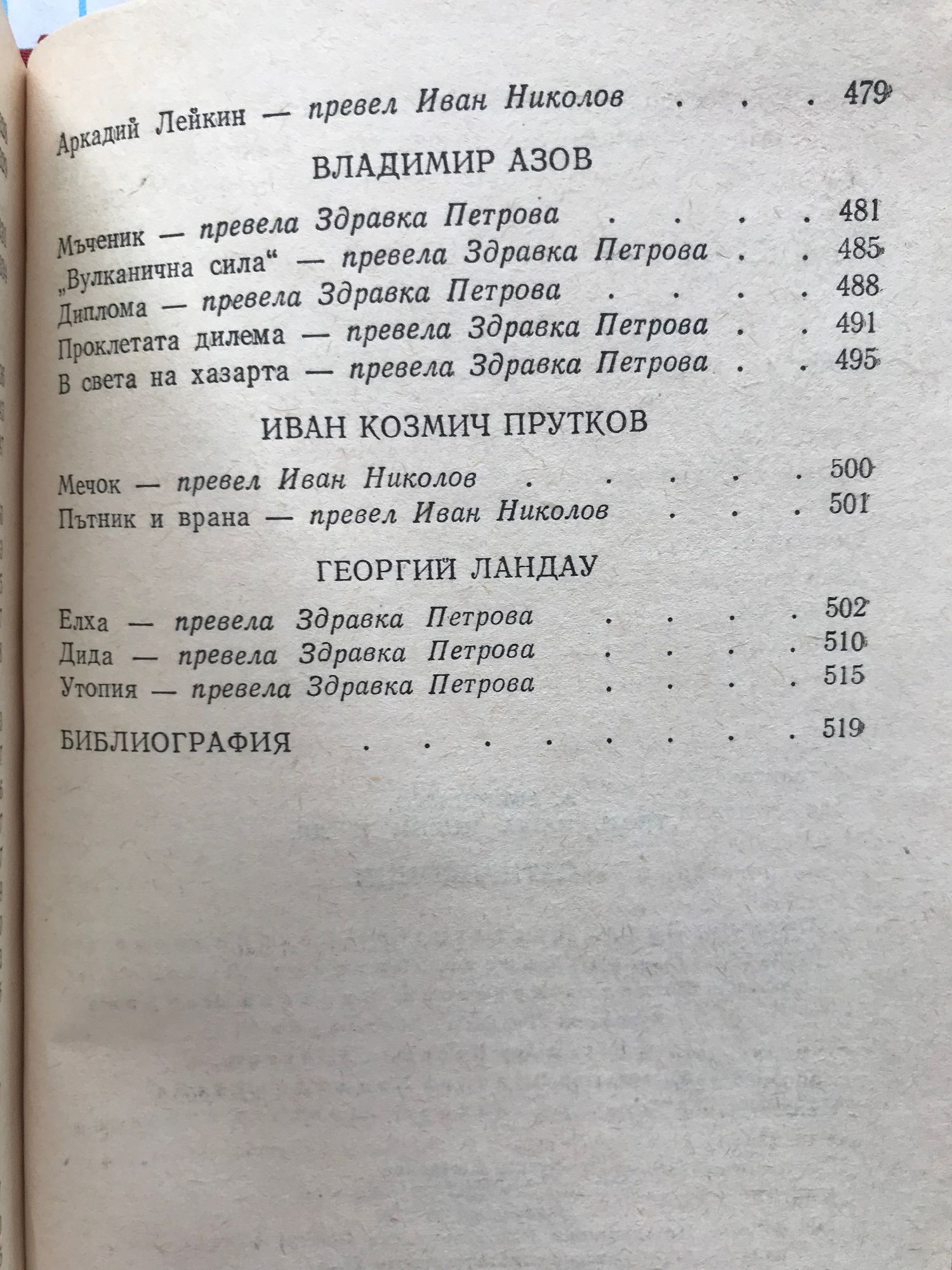 - преводач: Пенка Кънева, Владимир Райчев, Тодор Янчев, Иван Николов, Здравка Петрова