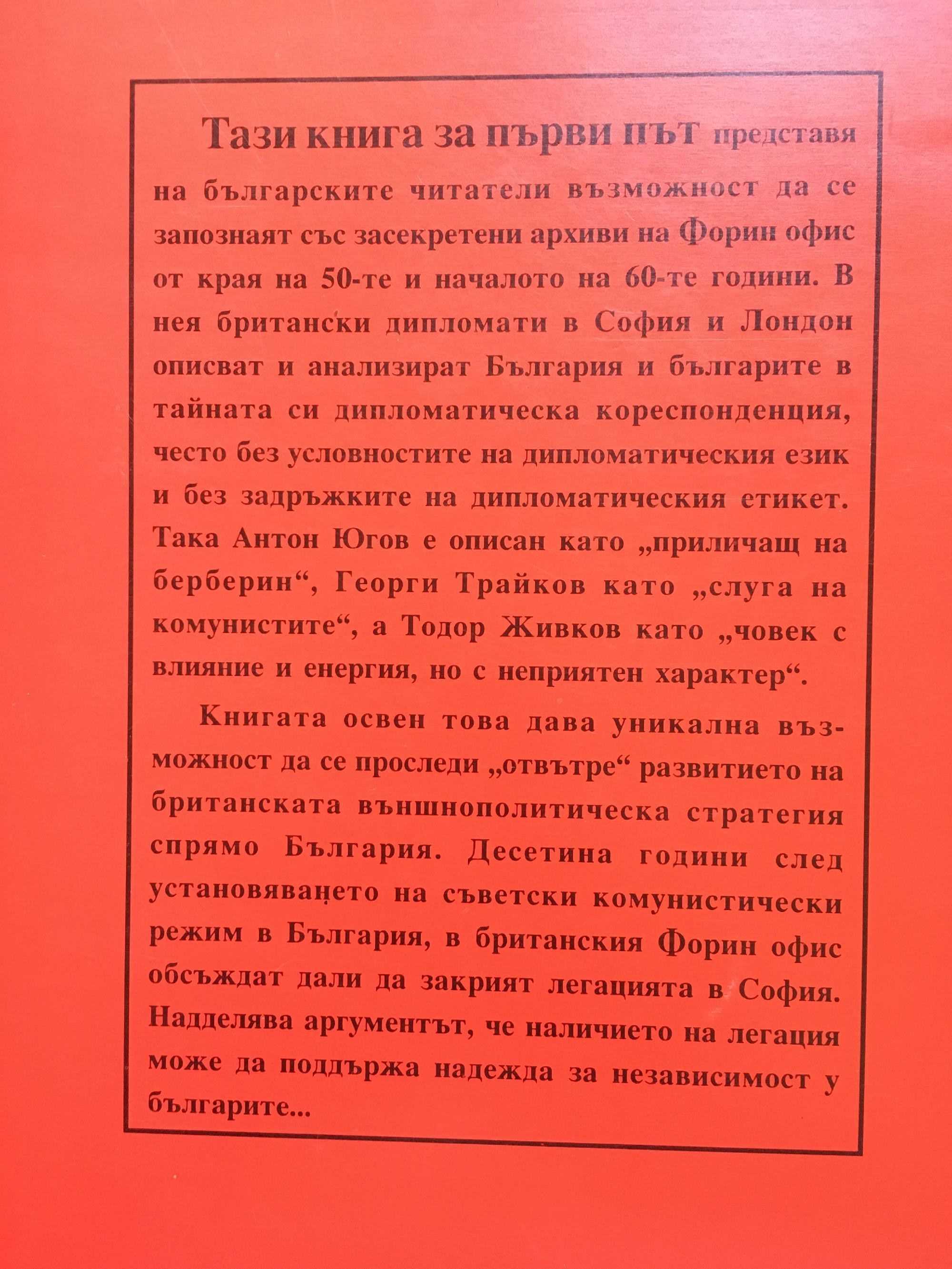 (1956 - 1963) Из архива на Форин офис за събития и личности в България. (1964 - 1966) Из архива на Форин офис по времето на първия британски посланик Уйлям Харпъм