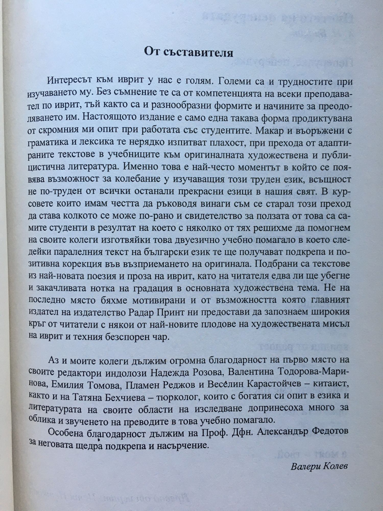 Съвременна израелска поезия и проза на български и иврит