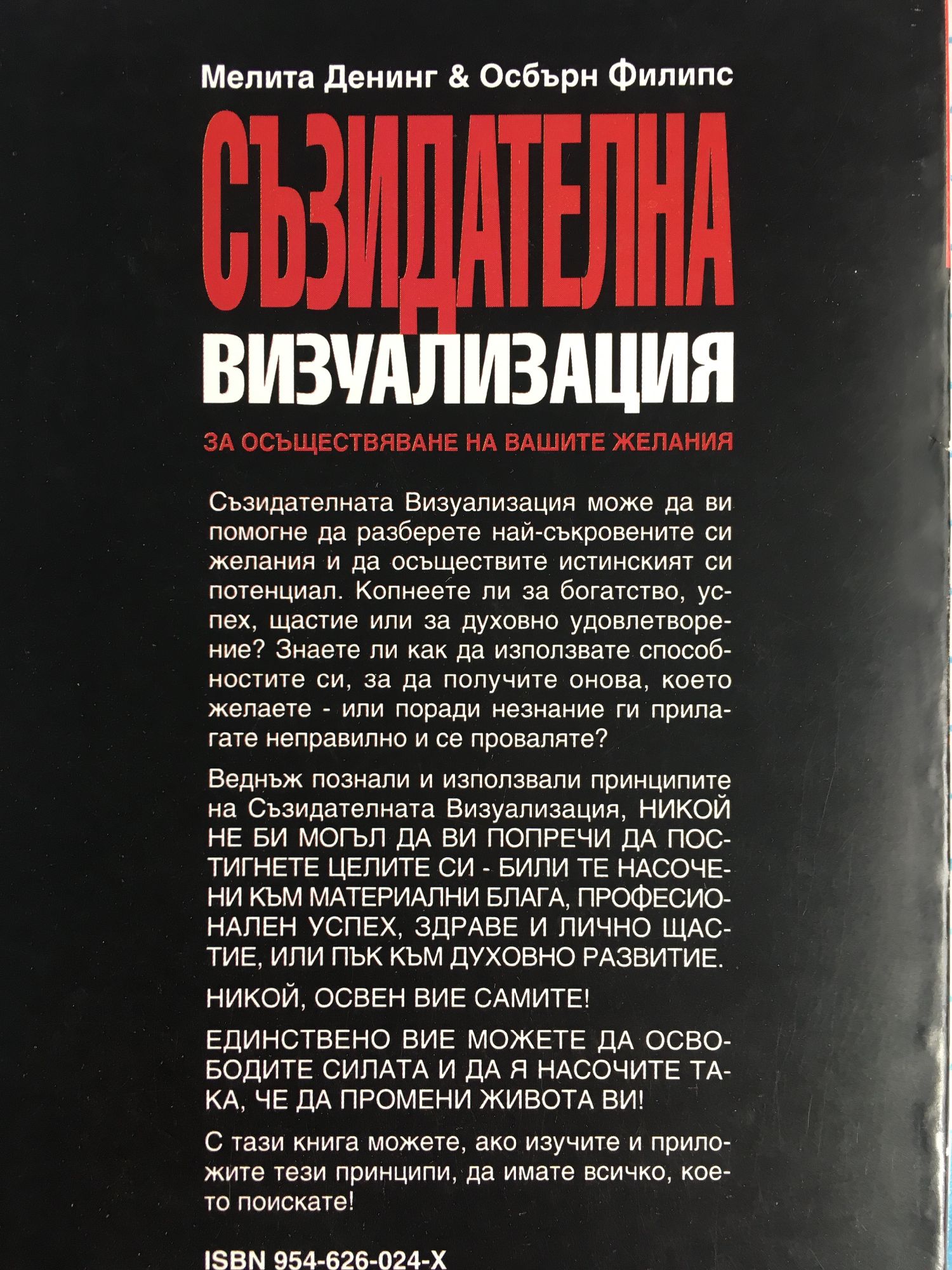 Книгата не е в наличност Съзидателната Визуализация може да ви помогне да разберете най-съкровените си желания и да осъществите истинският си потенциал. Веднъж познали и използвали принципите на Съзидателната Визуализация, никой не би могъл да ви попречи да постигнете целите си - били те насочени към материални блага, професионален успех, здраве и лично щастие, или към духовно развитие. Единствено вие можете да освободите силата и да я насочите така, че да промени живота ви!