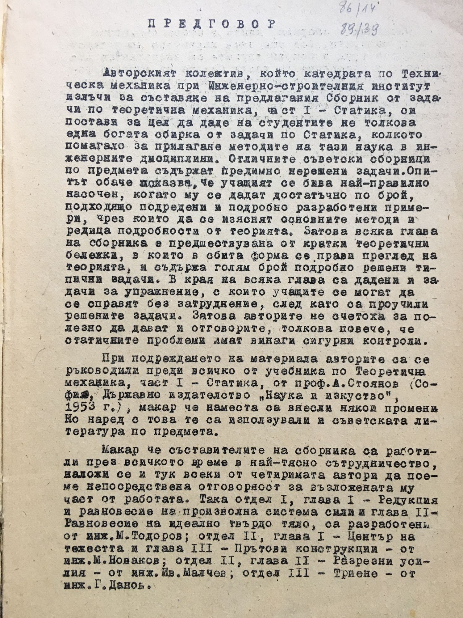от доц. инж. Ив. Малчев, инж. М. Тодоров, инж. Г. Данов, инж. М. Новаков