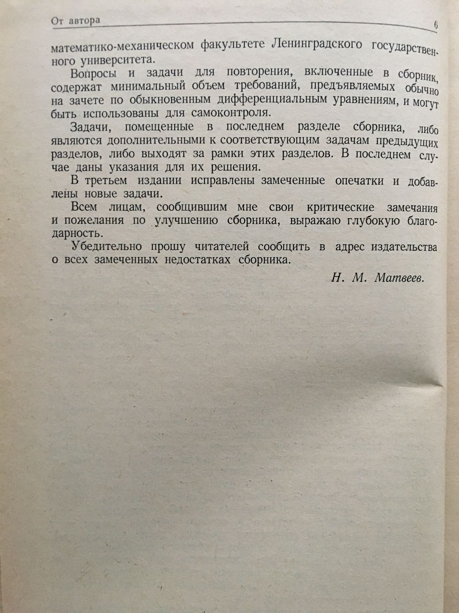 от Н. М. Матвеев