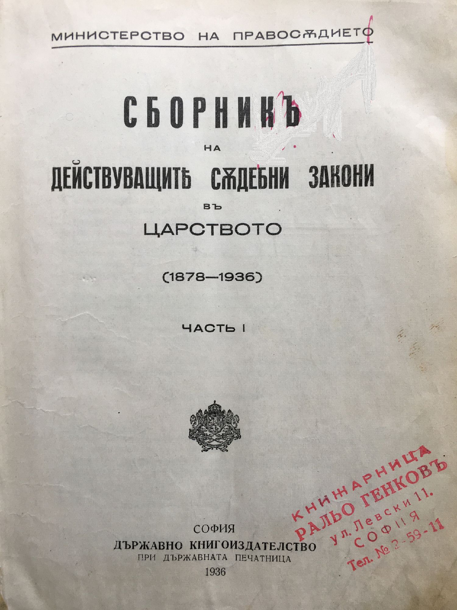 Сборникъ на действуващите съдебни закони въ царството (1878 - 1936) - часть 1 / Сборник на действуващите съдебни закони в царството (1878 - 1936) - част 1