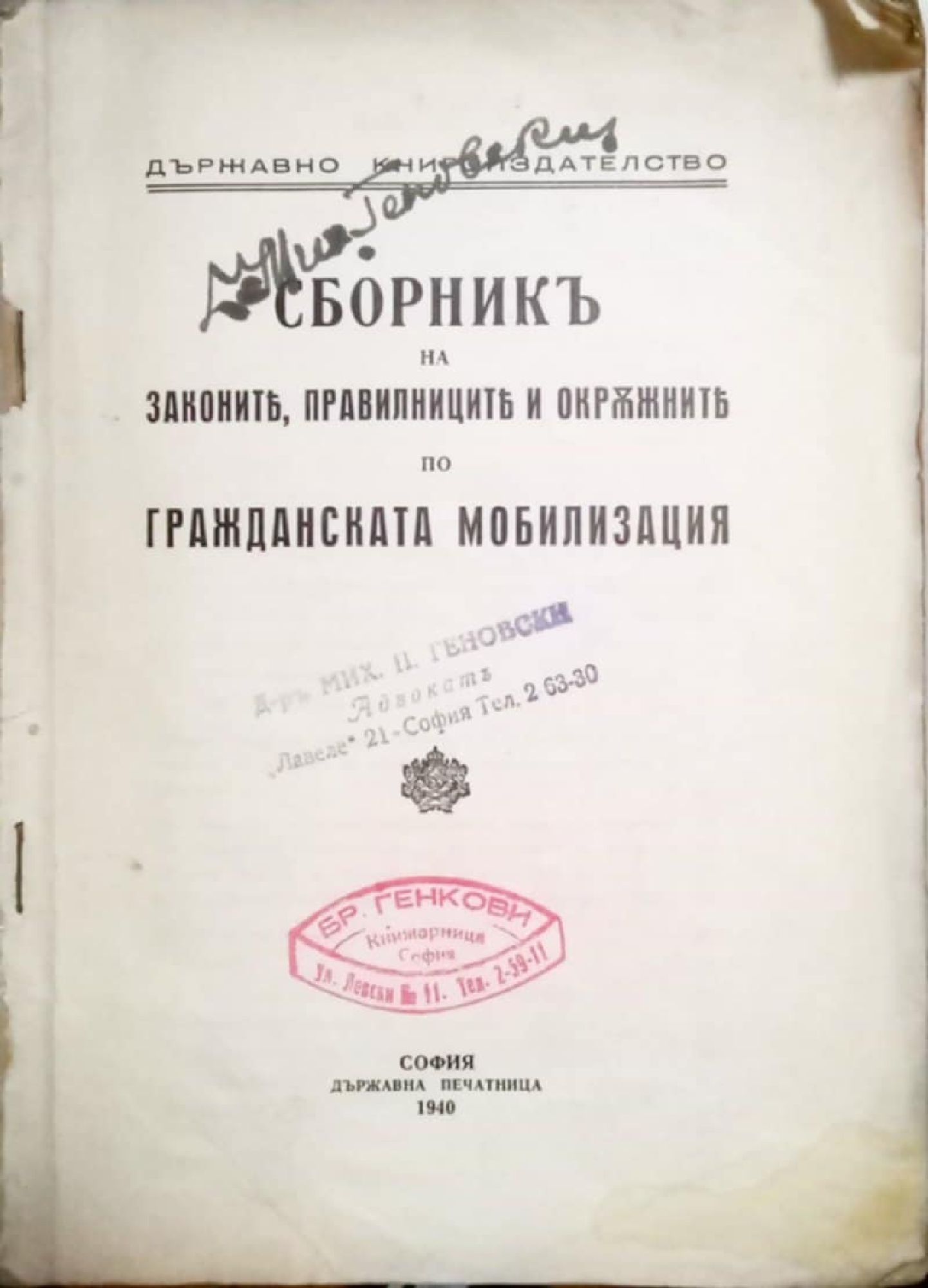 Сборникъ (сборник) на законите, правилниците и окръжните по гражданската мобилизация